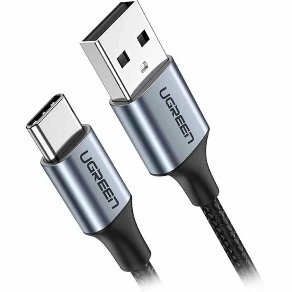 Кабель Ugreen USB A 2.0 - USB C, в оплетке, цвет черный, 1 м (60126)
