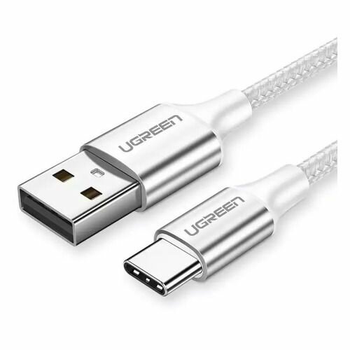 Кабель UGREEN US288 (60131) USB-A 2.0 to USB-C Cable Nickel Plating Aluminum Nylon Braid (1 метр) серебристый/белый