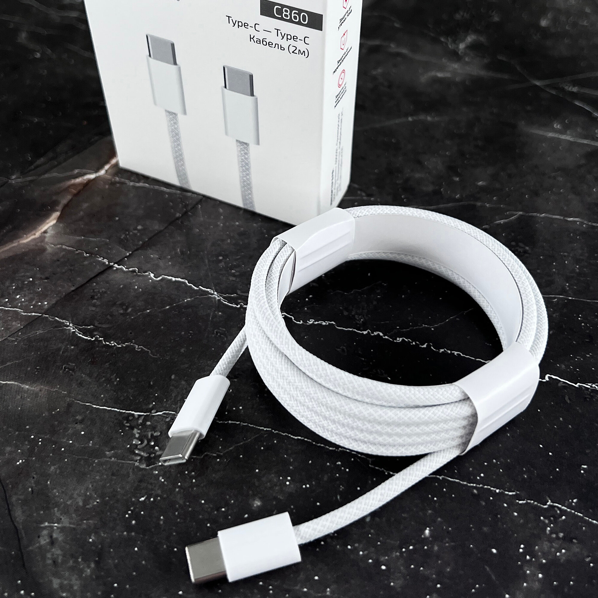 Купить Провод Type C Type C , WALKER C860, 2 метра, белый, 65W, Type-C-Type-C, поддержка PD, нейлон // провод type c, провод для айфона, провод type c type c
