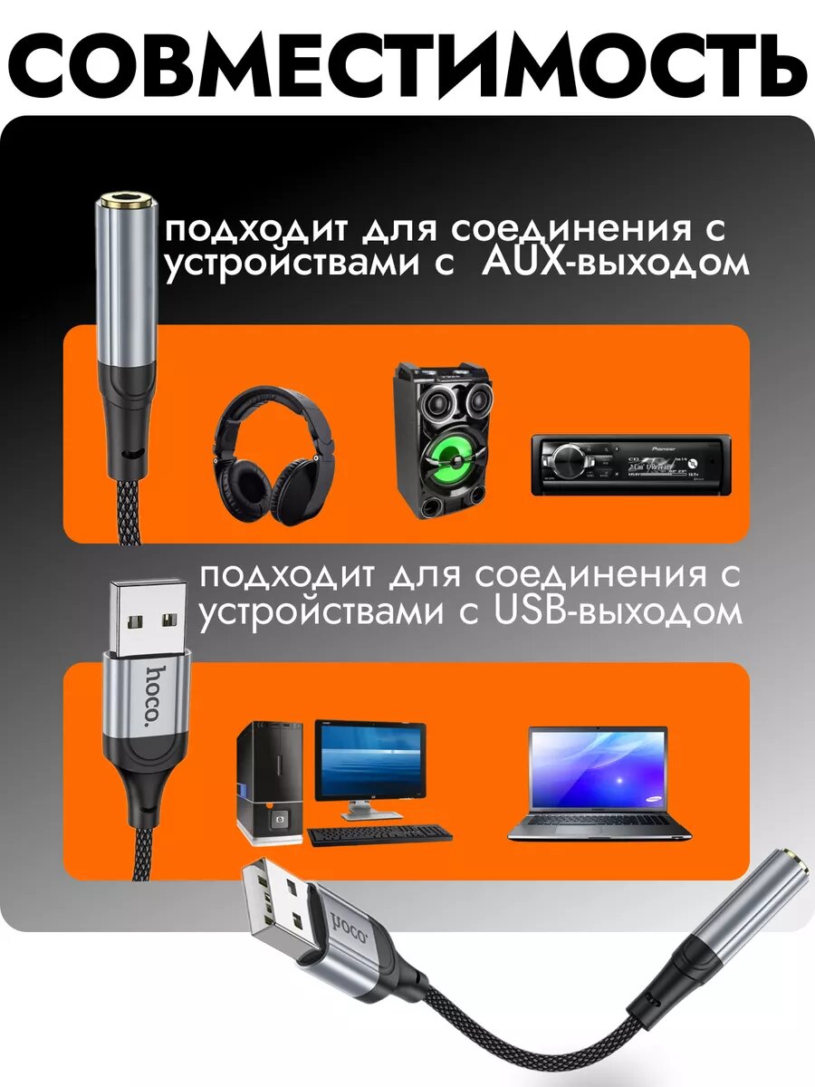 СохранитьПереходник с USB на 2 Jack 3.5мм (нашуники+микрофон), LS37, HOCO, черный интересное: