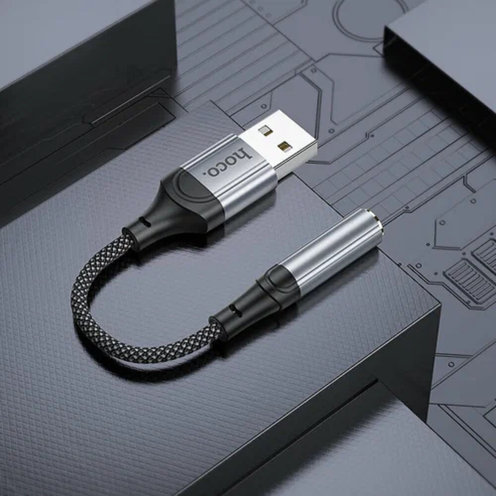 Купить Переходник с USB на 2 Jack 3.5мм (нашуники+микрофон), LS37, HOCO, черный