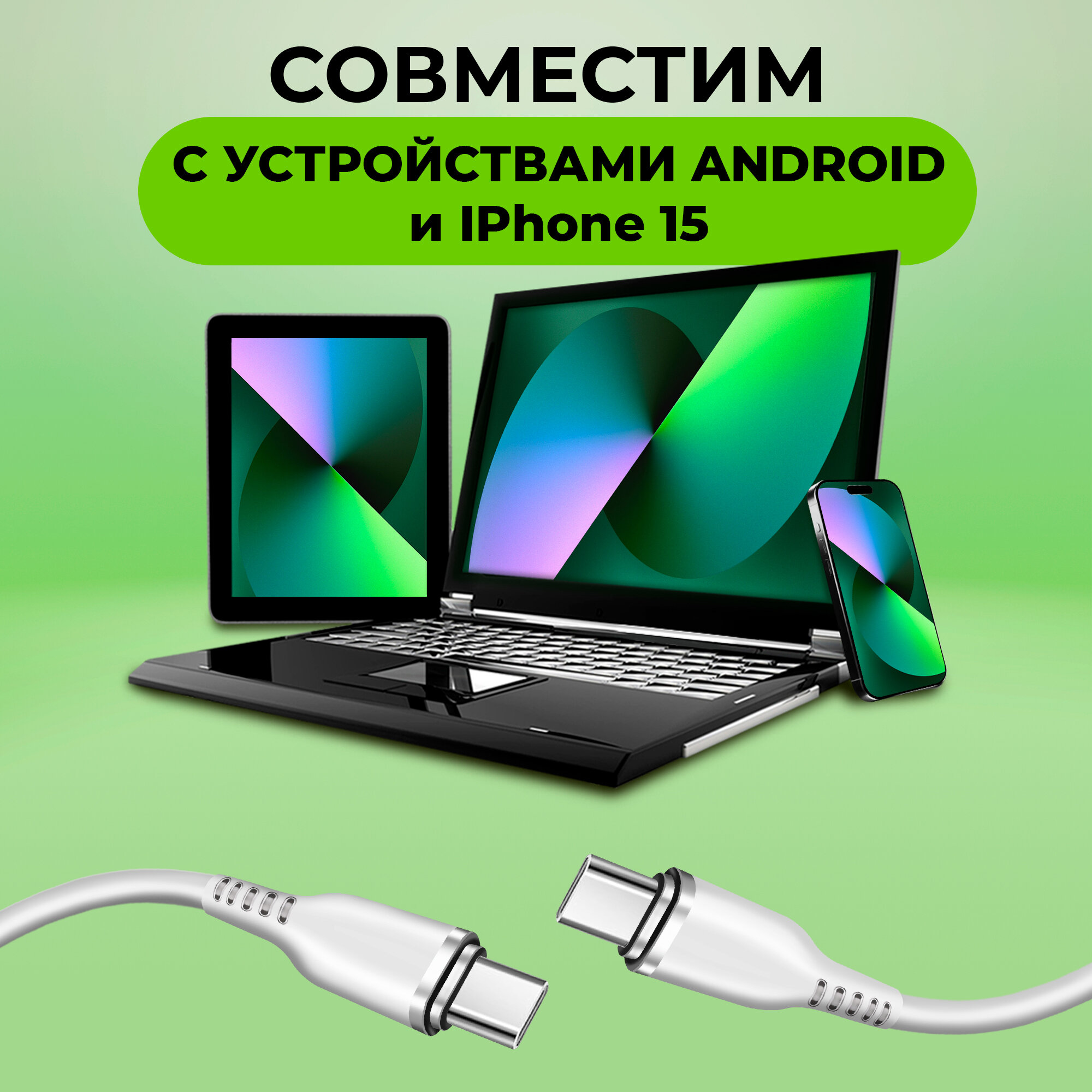 Кабель Type-C-Type-C, C795, 60W 3.3А, провод тайп си для быстрой зарядки телефона самсунг, шнур на адроид, для айфона, как hoco, baseus, xiaomi, белый