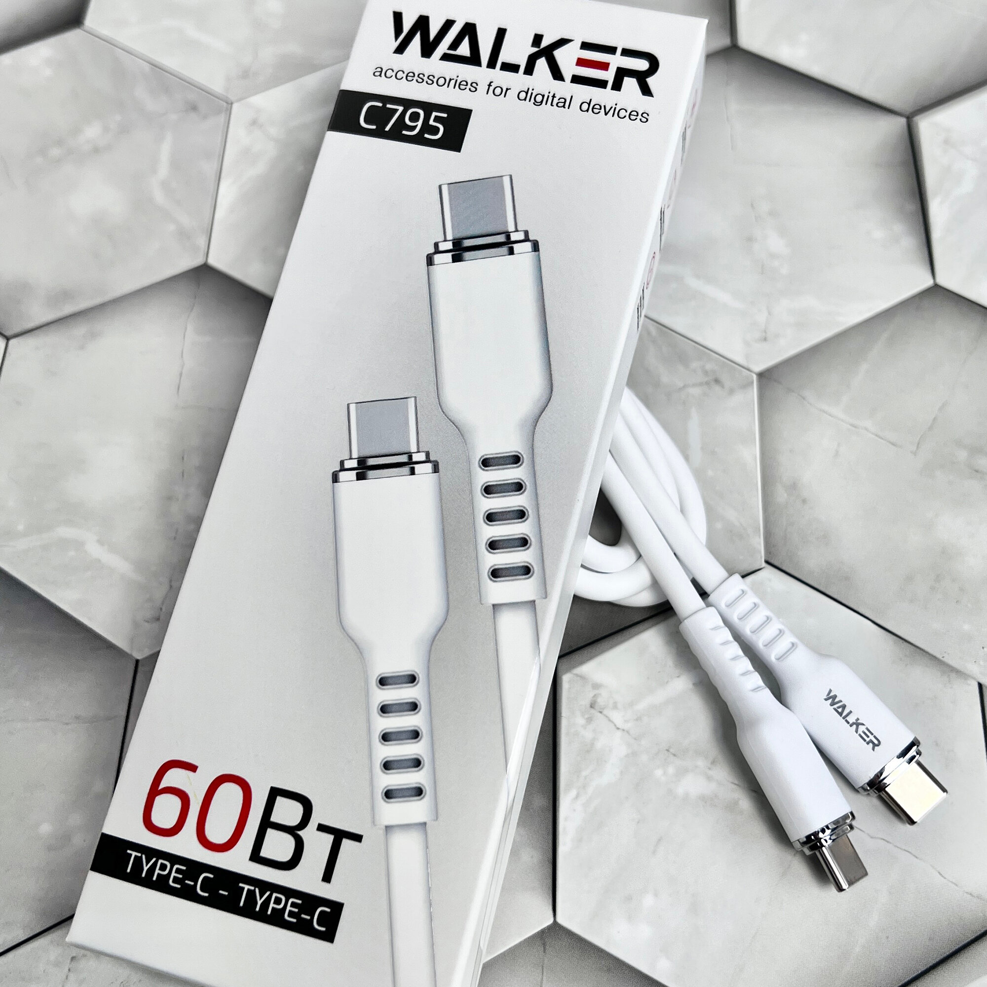 Купить Кабель Type-C-Type-C, быстрая зарядка и передача данных, "WALKER", C795 60W 3.3А, 1м кабель typec для зарядки телефона самсунг, xiaomi, белый