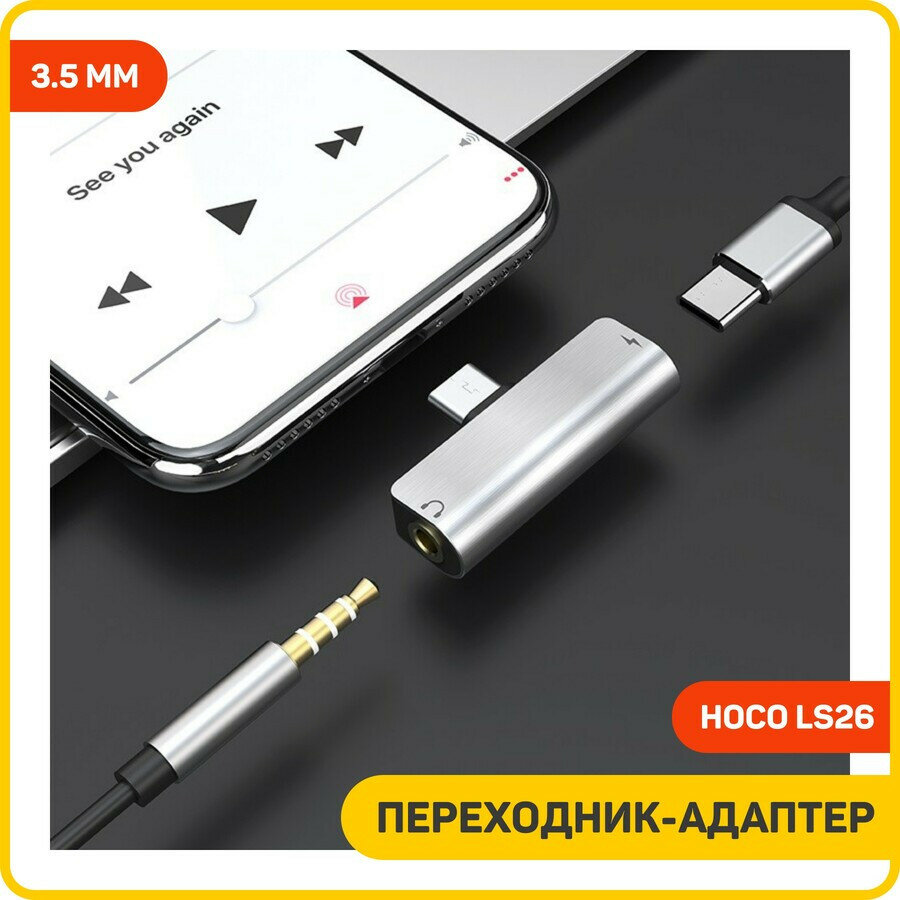 Адаптер Hoco LS26 Type-C на 3.5мм, зарядка и звук, (серебро)