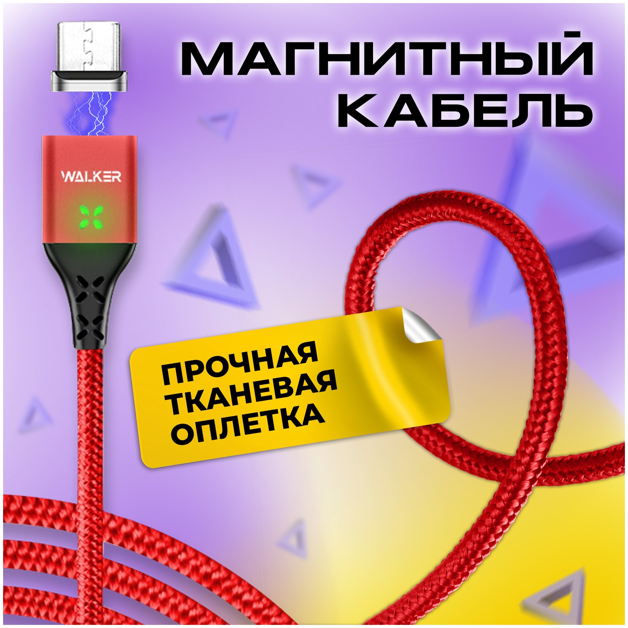 Купить Магнитный кабель с быстрым зарядом 3.3А, передача данных USB - micro USB WALKER C970, зарядное устройство, зарядка микро на телефон android, красный