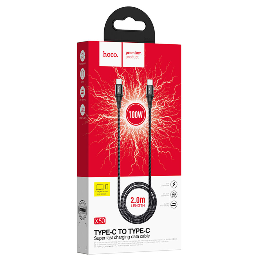Скоростной кабель Type-C- Type-C для ноутбуков, Macbook, планшетов и т.д. (100W, 1м , 20V/5A) , HOCO X50