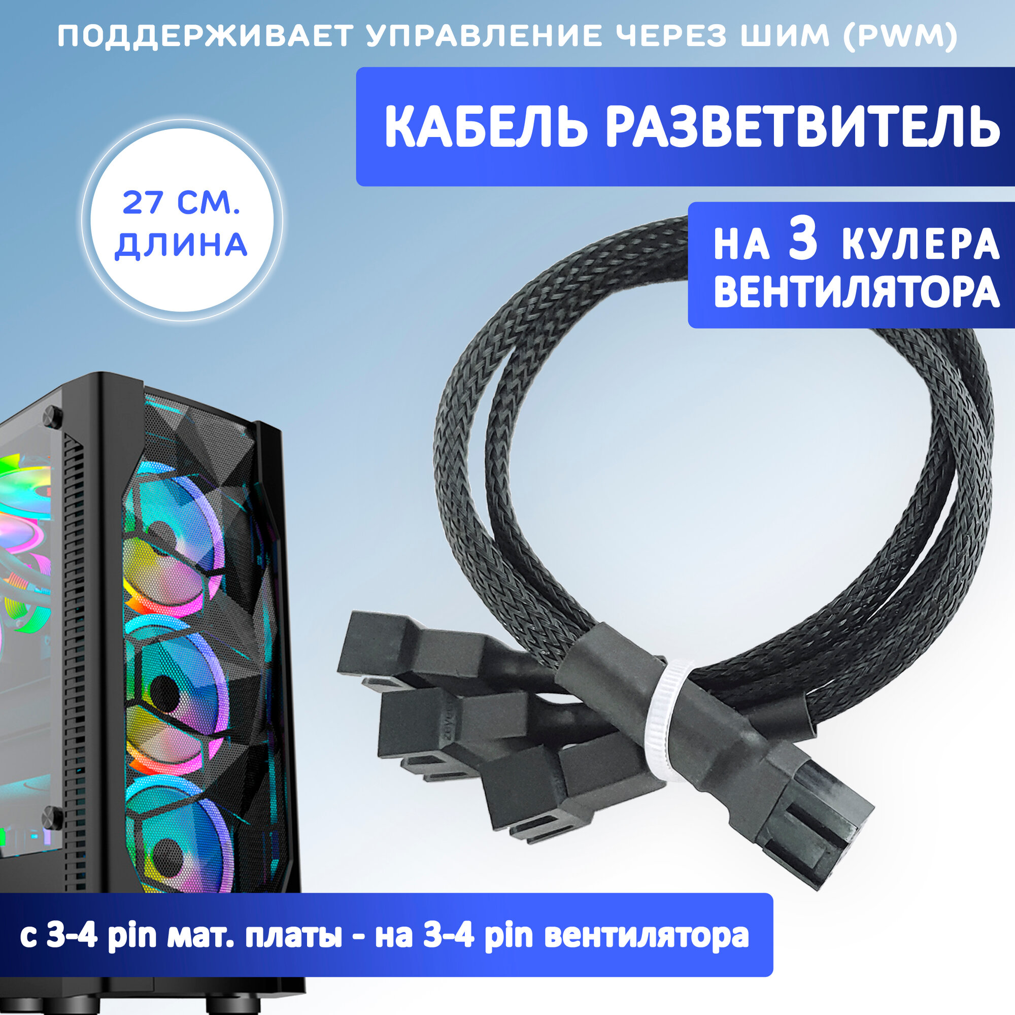 Кабель разветвитель на 3 кулера/вентилятора на 3-4 pin. PWM, 27см чёрный в оплетке, удлинитель вентилятора интересное: