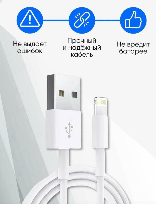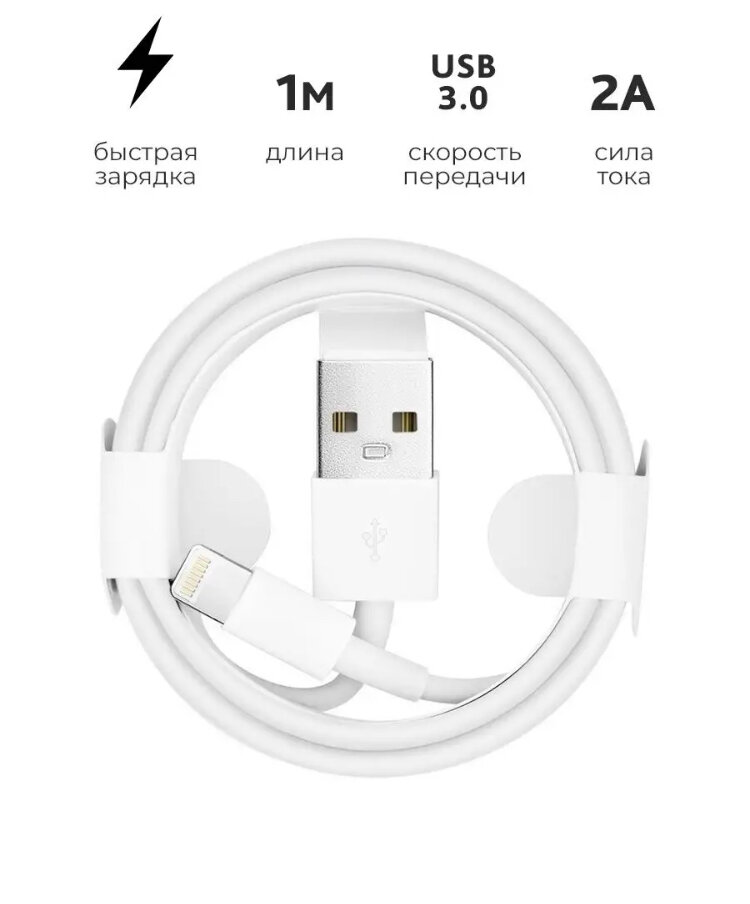 Кабель для зарядки iPhone iPad высокое качество с разъемами Lightning и USB 1 метр белый