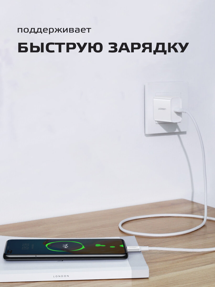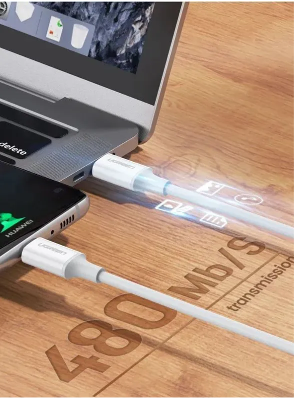 Кабель UGREEN US264-60519, Type C to Type C, 3A, PD 60W Fast Charge 1.5m White