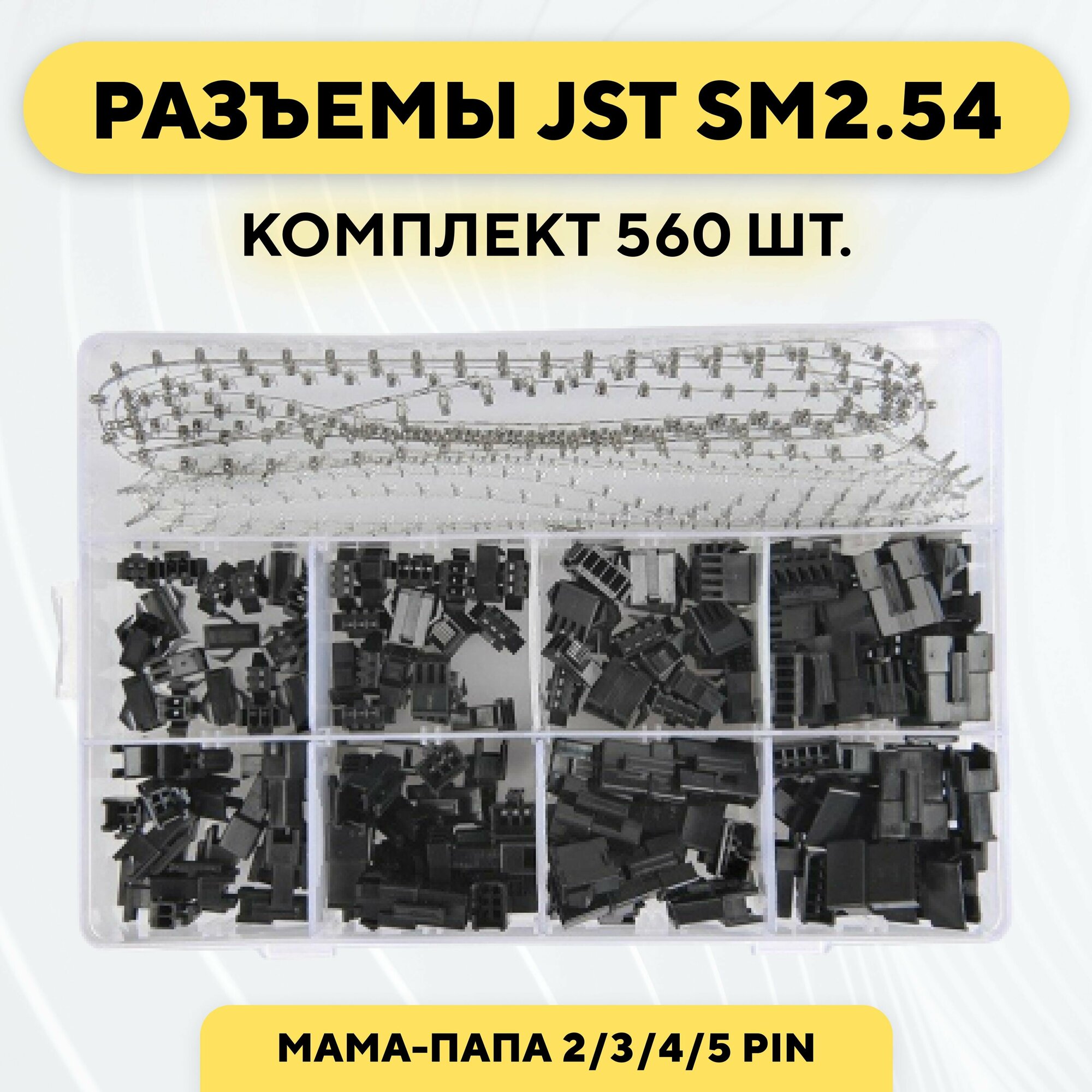 Купить Комплект разъемов SM2.54 мама-папа 2/3/4/5 pin 560 штук