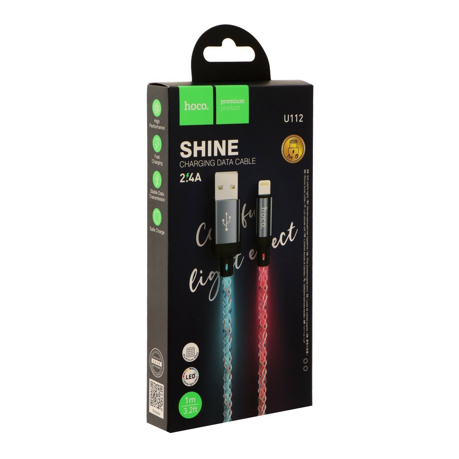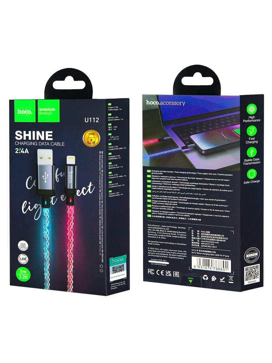 | Дополнительная информация | Кабель USB 2.4A (iOS Lighting) 1м LED HOCO U112 Серый |