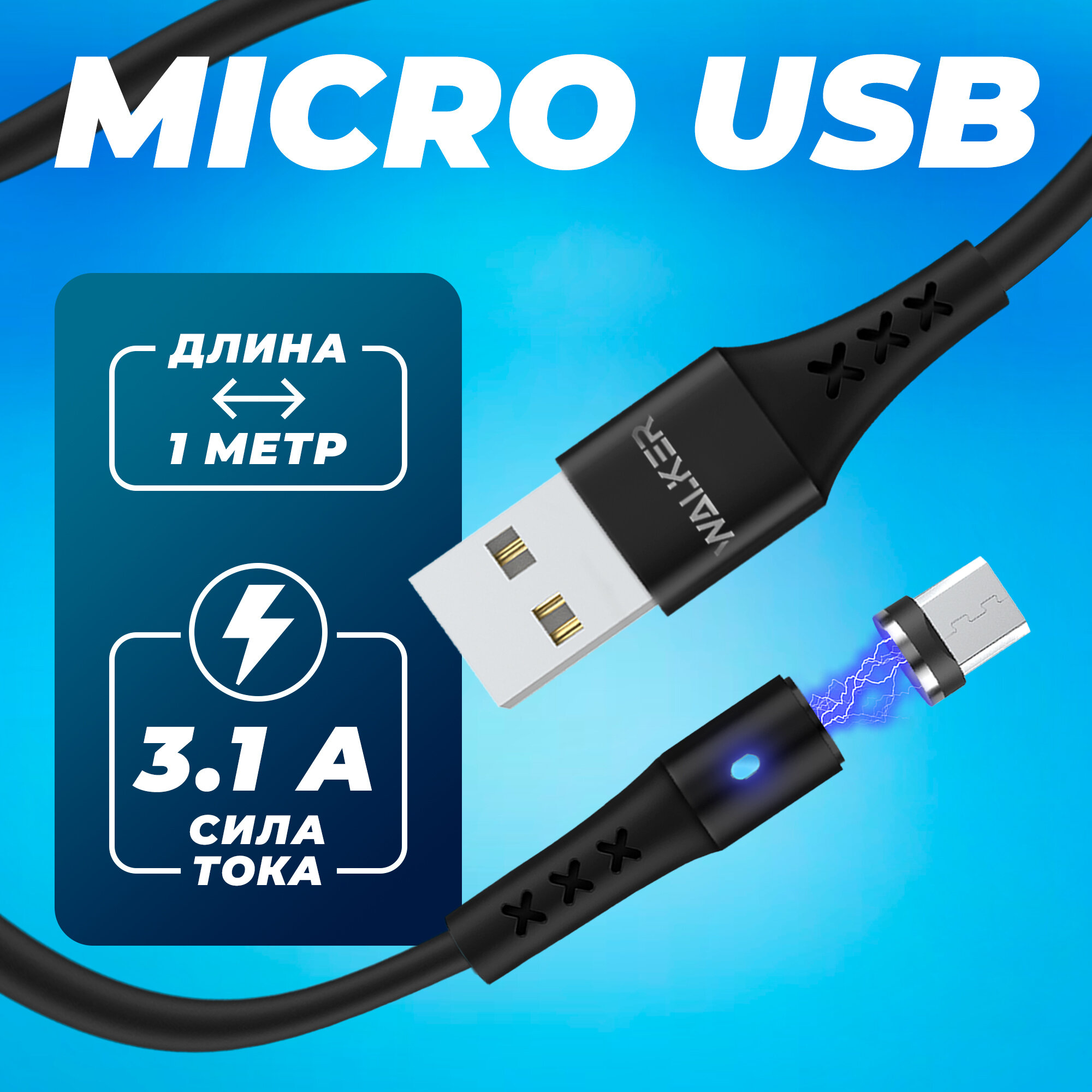 СохранитьКабель USB для телефона магнитный с индикатором Micro, WALKER, WC-775, 3.1 А, usb провод на андроид, шнур для зарядки на android, аксессуар, черный интересное: