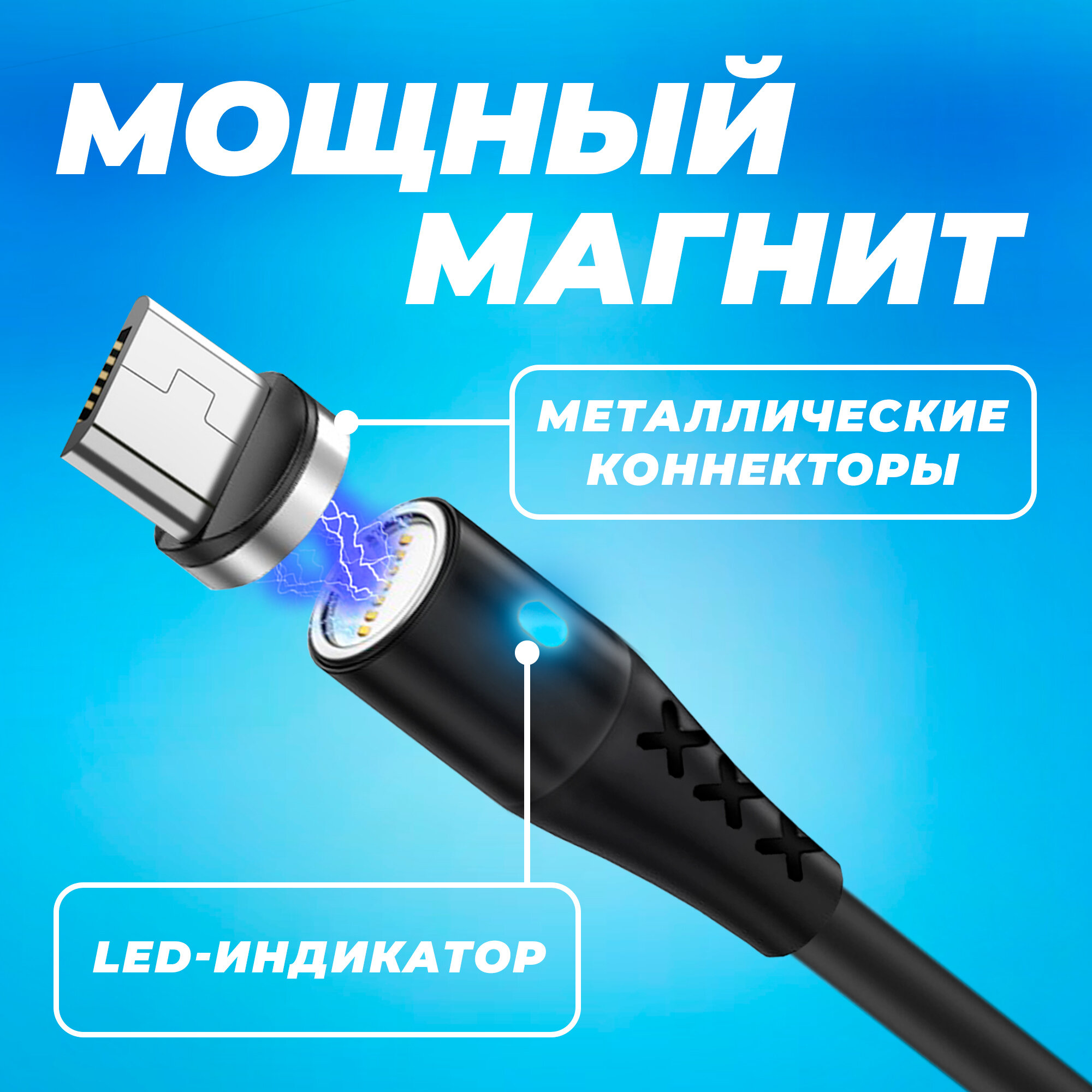 Купить Кабель USB для телефона магнитный с индикатором Micro, WALKER, WC-775, 3.1 А, usb провод на андроид, шнур для зарядки на android, аксессуар, черный