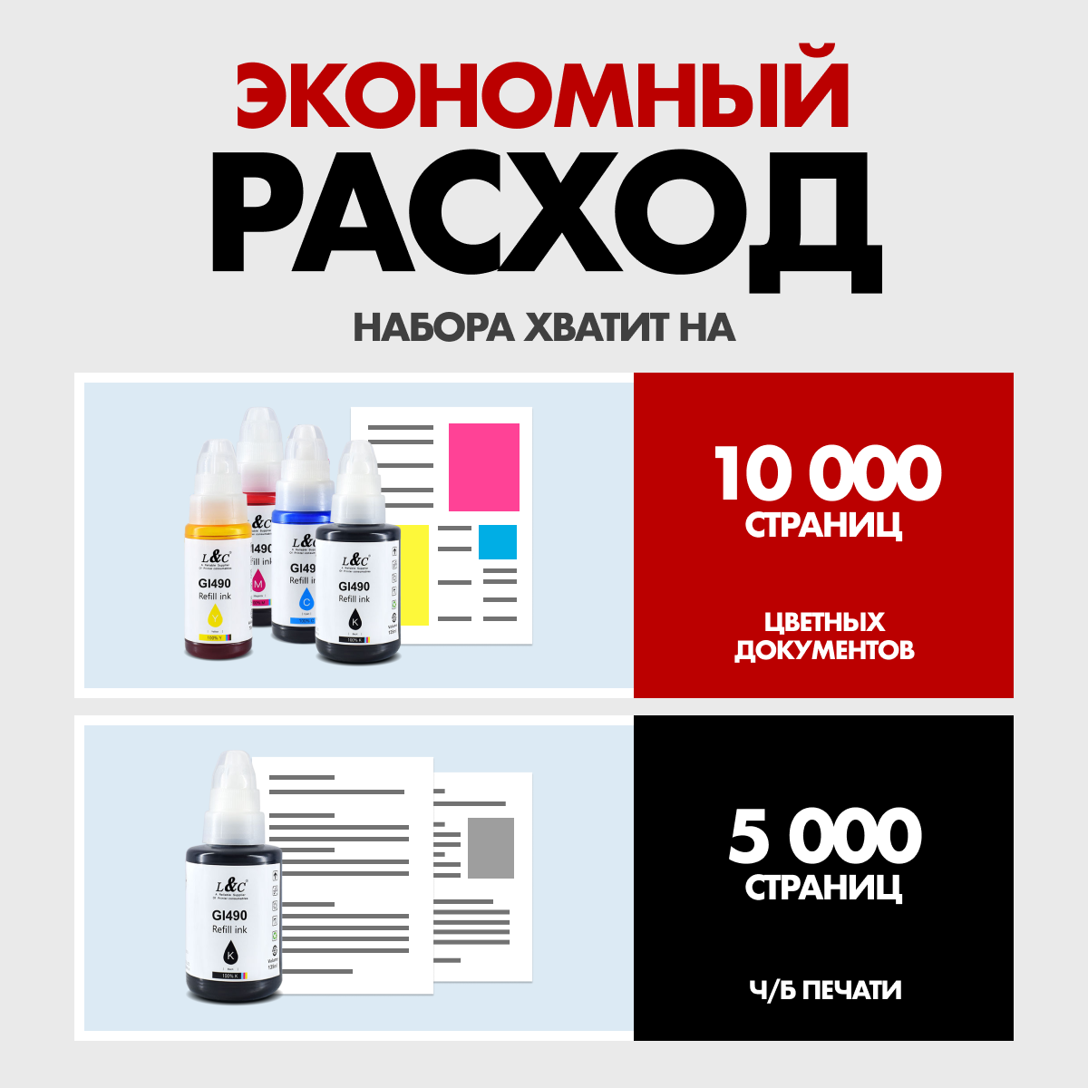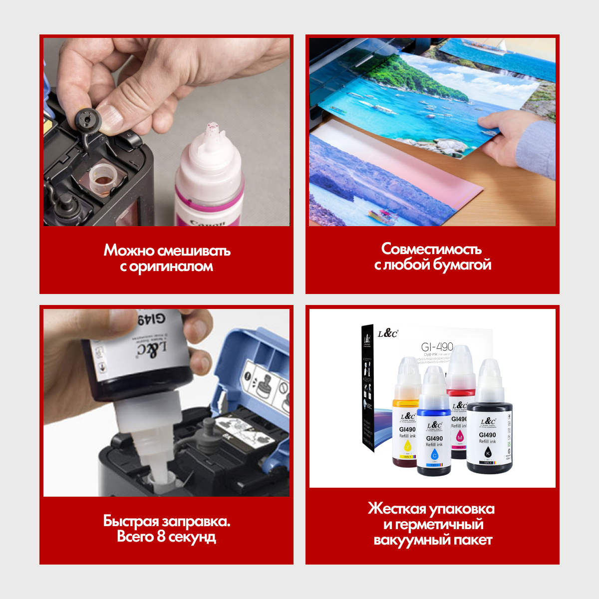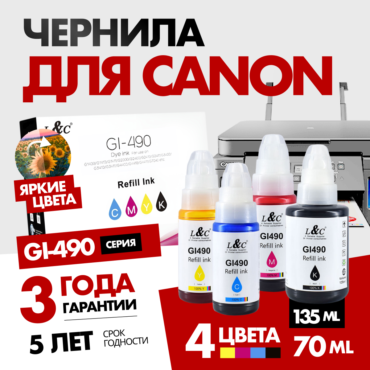 Чернила краска GI-490 для принтера Canon, G1400, G1410, G1411, G2400, G2410, G2411, G2415, G3400, G3410, G3411, G4400, G4410, G441; набор интересное: