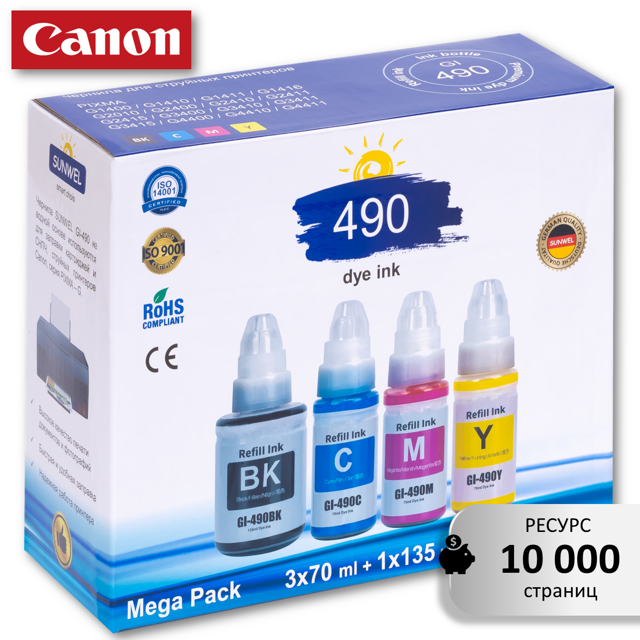 Купить Чернила краска для принтера CANON PIXMA GI-490, 4 цвета, G1400, G1410, G1411, G2400, G2410, G2411, G2415, G3400, G3410, G3411, G4400, G4410, G4411