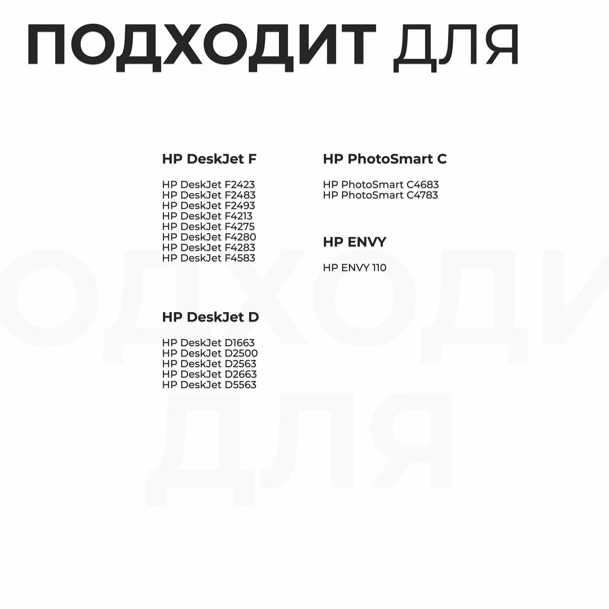 | Дополнительная информация | DeskJet F2420, DeskJet F2423, DeskJet F2480, DeskJet F2483, DeskJet F2493, DeskJet F4275, DeskJet F4583, PhotoSmart C4683, PhotoSmart C4783, PhotoSmart C4795, ENVY 110 e-All-in-One |