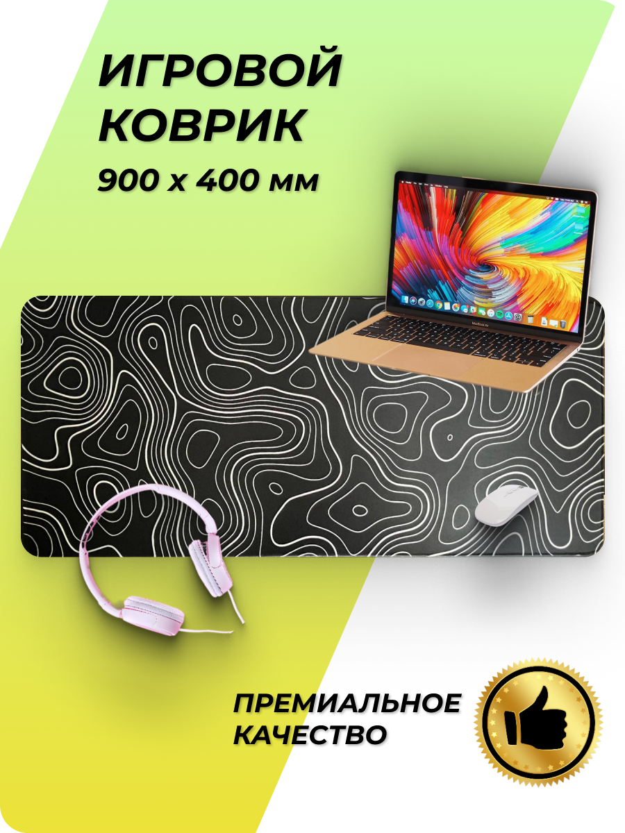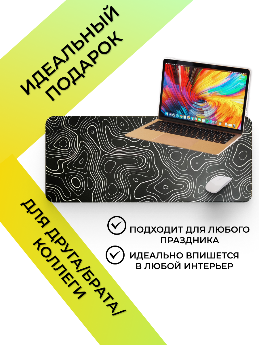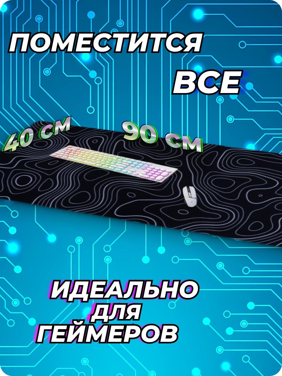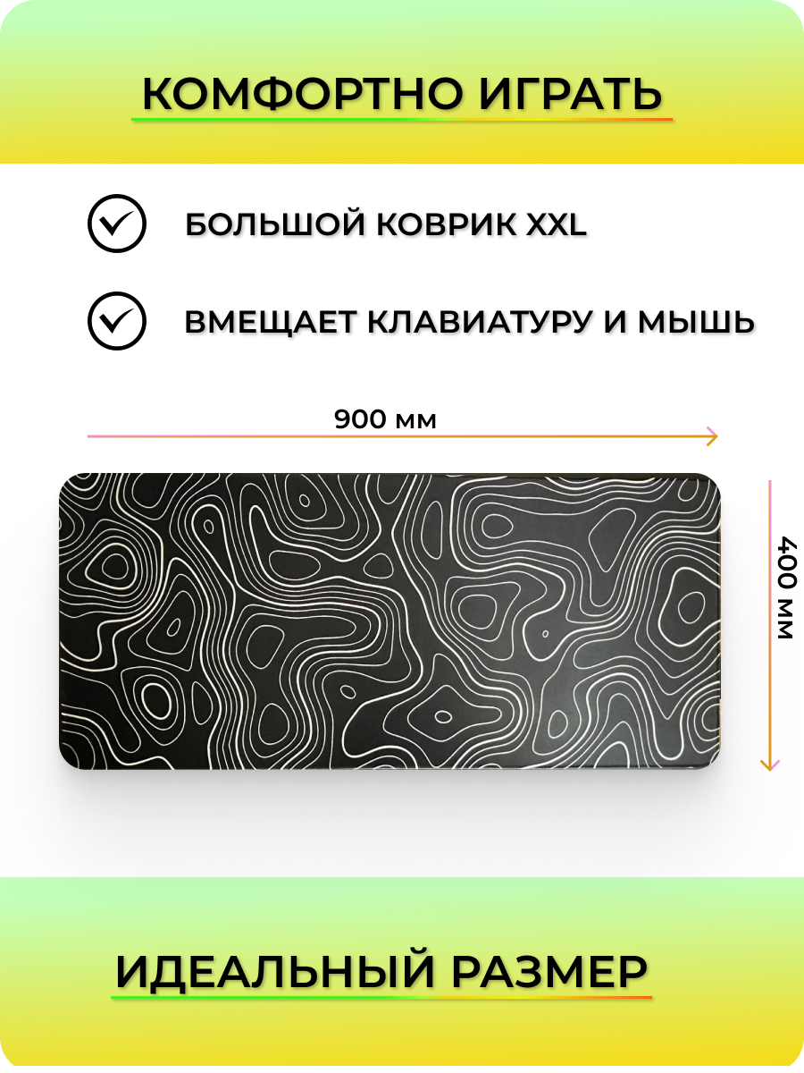 Игровой коврик для мыши, XXL, черный (белый узор) интересное:
