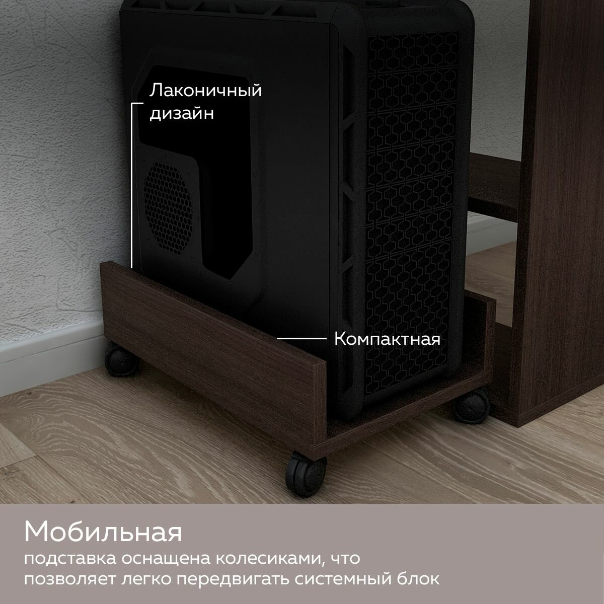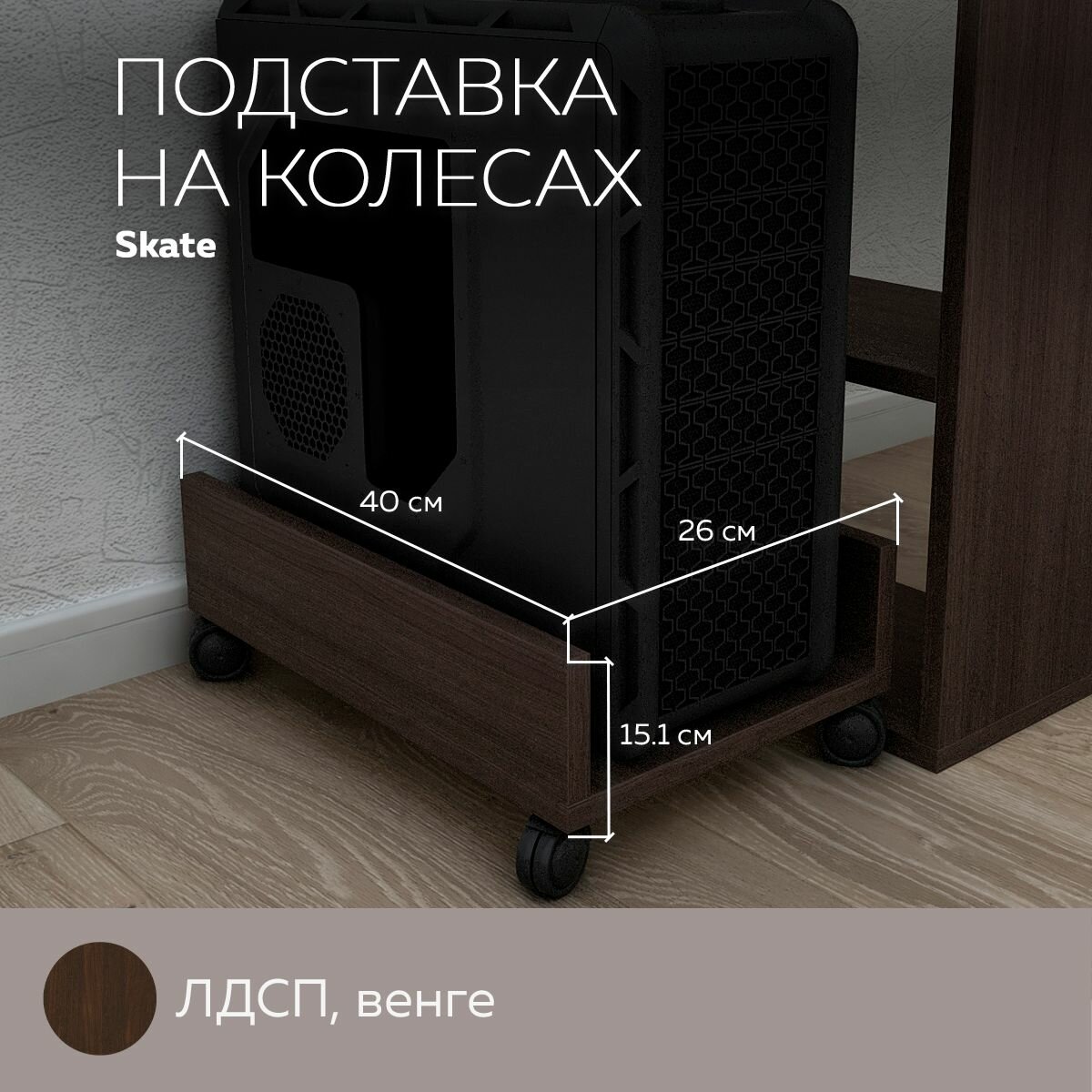 Подставка Skate на 4 колесах под системный блок, Венге интересное:
