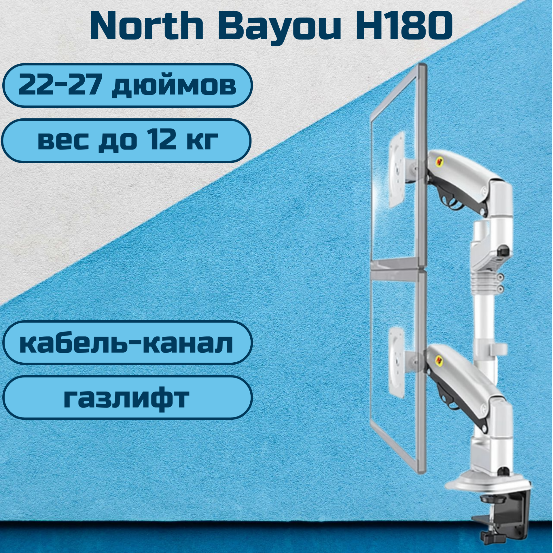 Двойной настольный кронштейн NB North Bayou H180 для мониторов 22-27" до 9 кг, белый интересное: