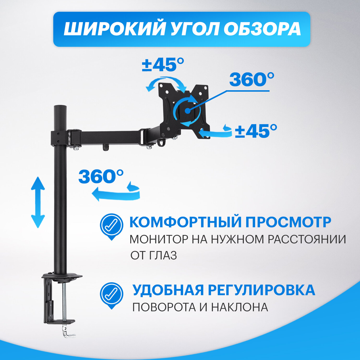 Настольный кронштейн для монитора 13-27 дюймов, вращение на 360 градусов, крепление на струбцину интересное: