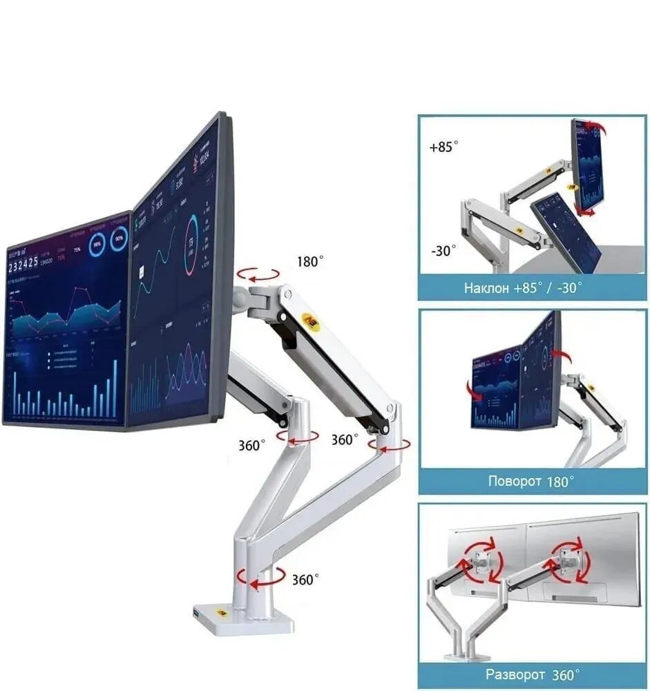 Двойной настольный кронштейн NB North Bayou G32 для мониторов 22-32" до 15 кг, серебристый интересное: