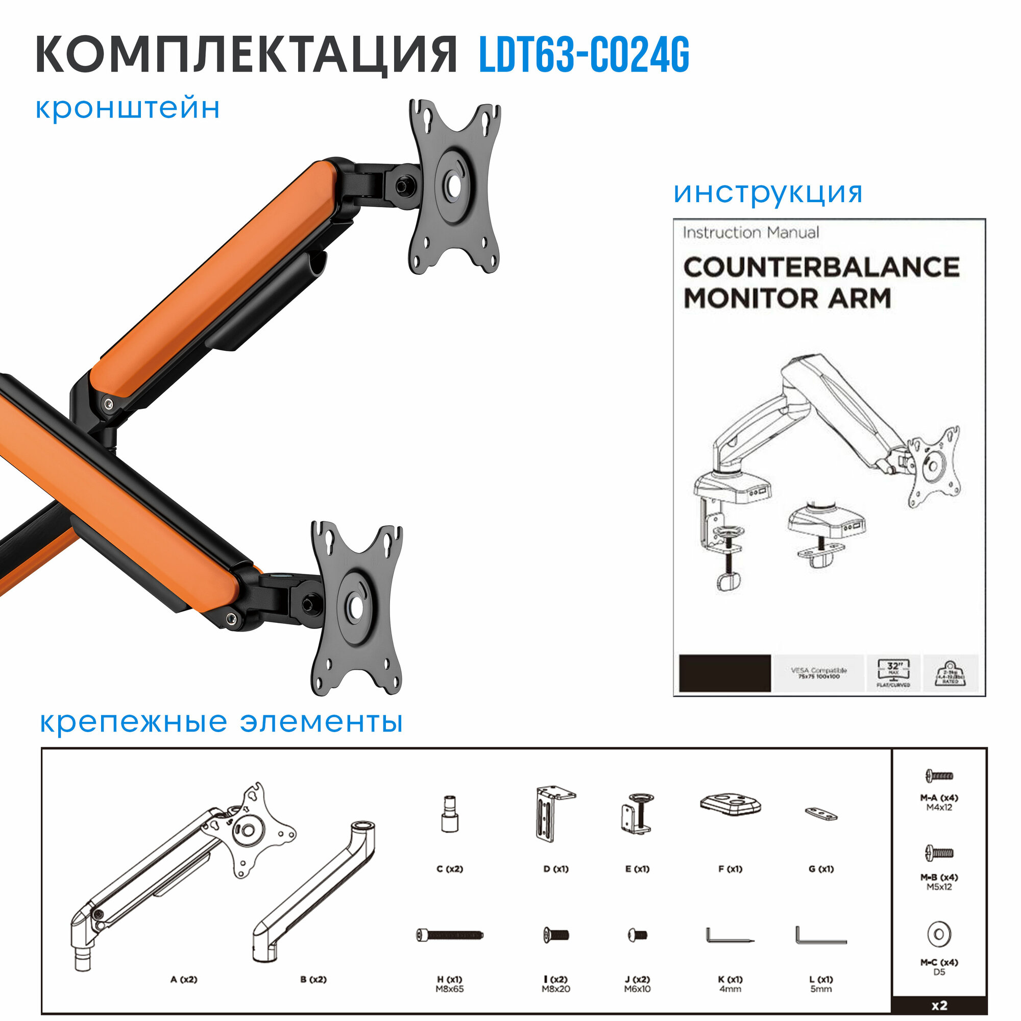 Кронштейн для двух мониторов Godoo 17"-32" дюймов настольный LDT63-C024G Matte Black & Orange интересное: