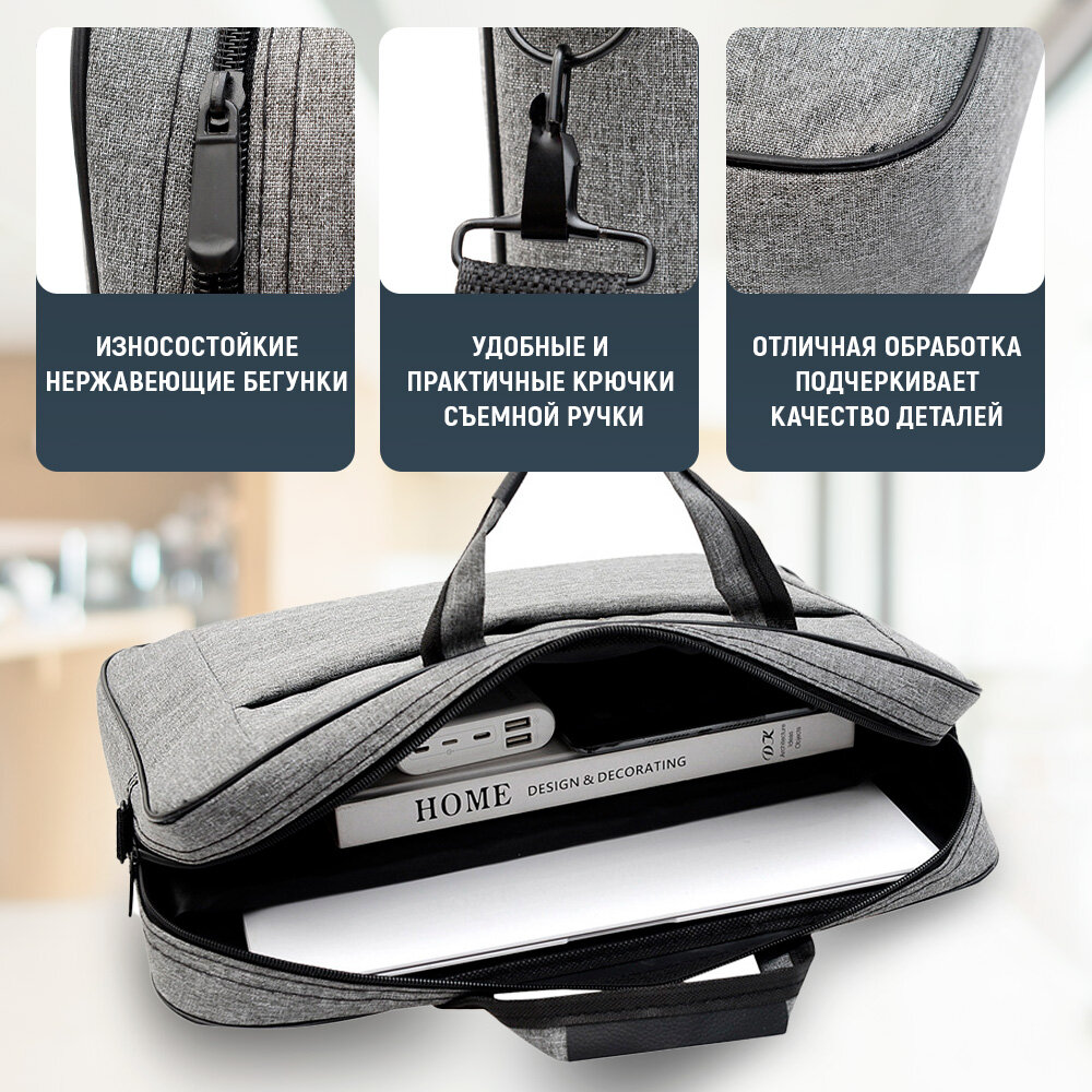 Сумка для ноутбука до 15,6 дюймов мужская, женская / Сумка для ноутбука, под ноутбук, макбук (Macbook), ультрабук / Деловая сумка с карманом, серая интересное: