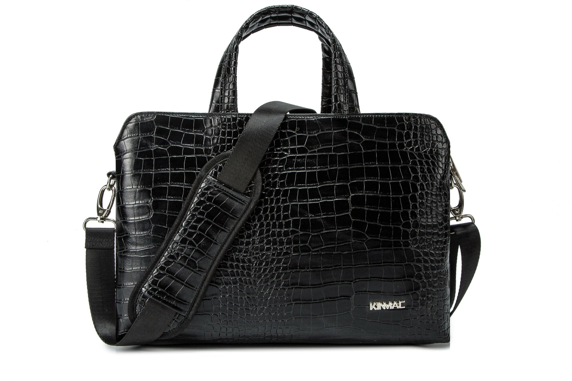 Сумка для ноутбука 15.6, 16 и 17 дюймов KINMAC с ремнем на плечо и 3 отделениями (Черная экокожа)