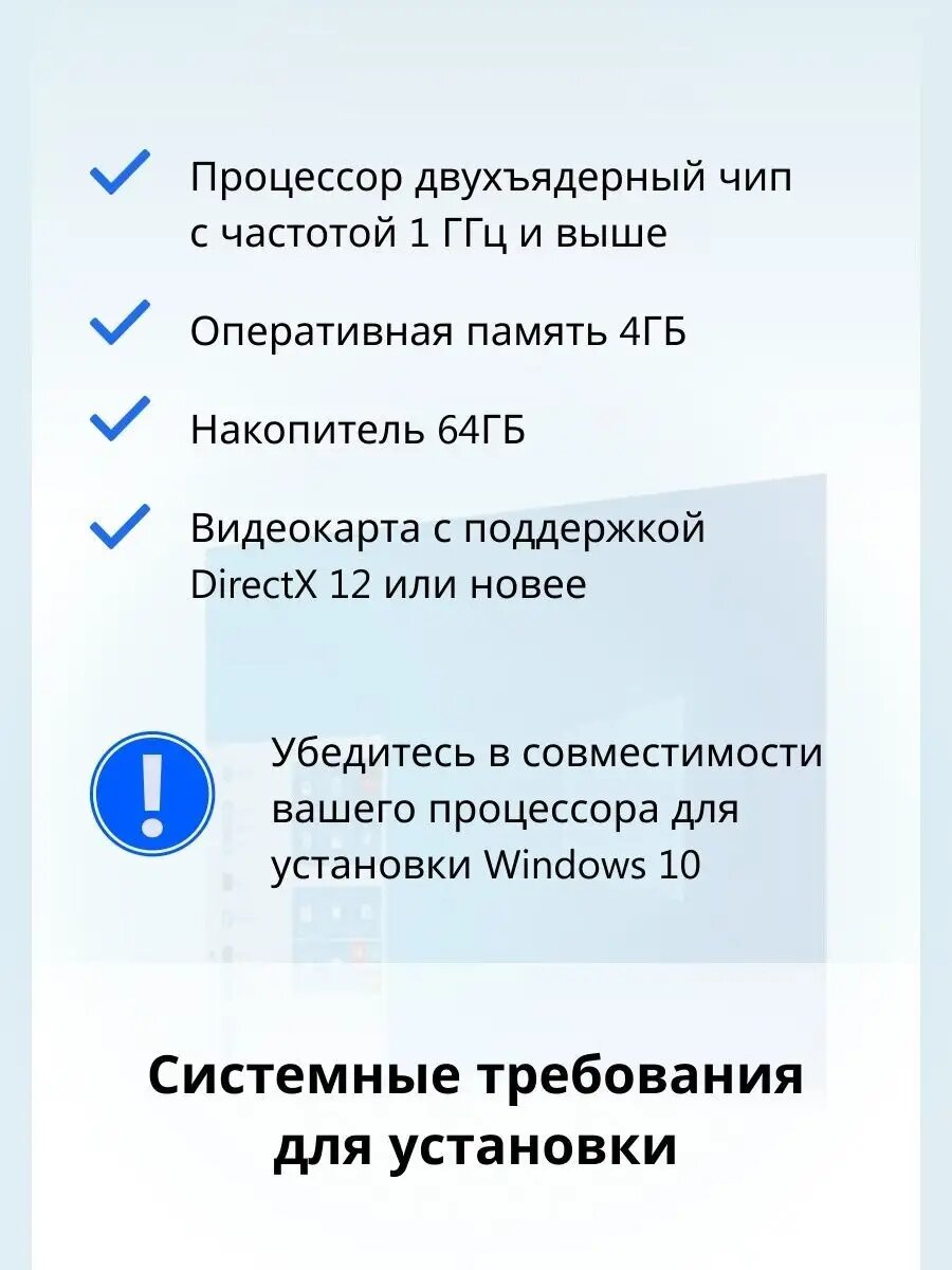 | Дополнительная информация | Комплектация - ключ активации Windows 10 Home;Ссылка на скачивание;Инструкция по установке(текст+видео);гарантийный талон;загрузочная флешка |