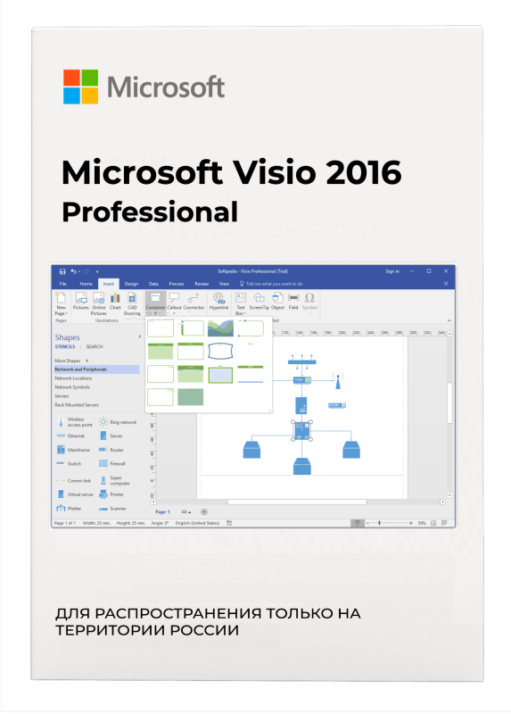 | Состав пакета | Microsoft Visio Professional 2016 |
