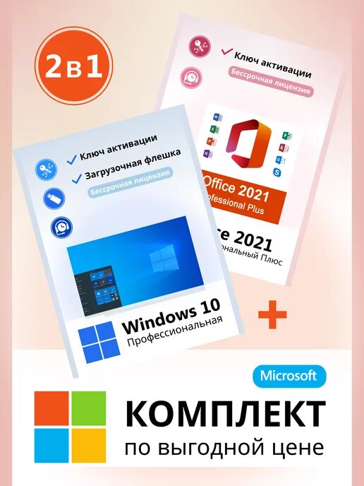 Microsoft Windows 10 PRO & Microsoft Office 2021 Pro Plus для России. Полный комплект, word, excel интересное: