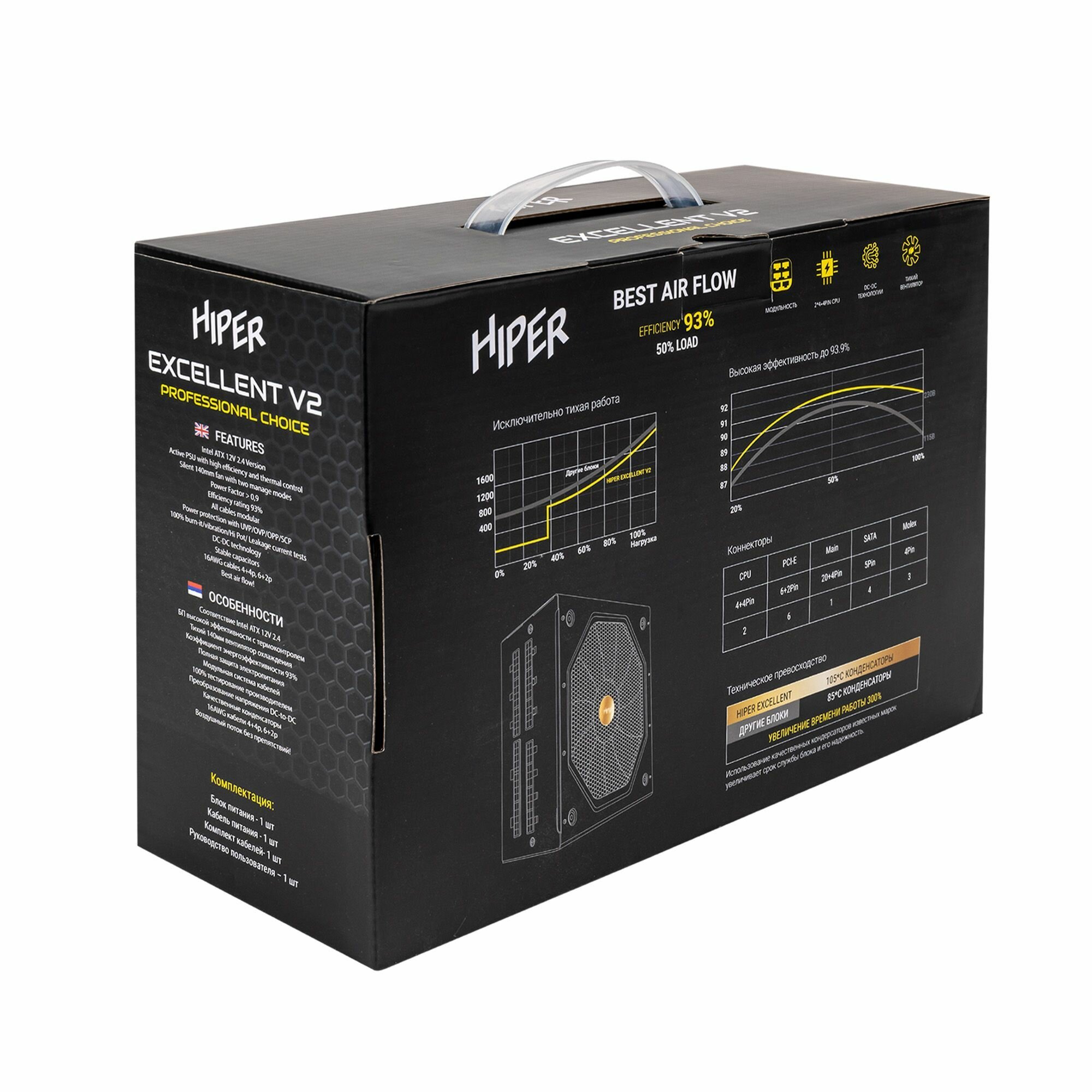 Блок питания Hiper блок питания для ПК 1300 Ватт/ PSU HIPER HPG-1300FM (1300W, Gold 14cm Fan, 220V input, Efficiency 93%, Modular, Black)BOX интересное: