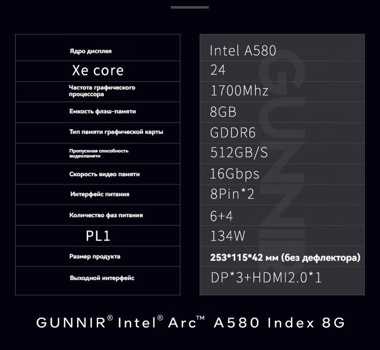 Видеокарта GUNNIR Intel Arc A580 8GB GDDR6 (GUNNIR Intel Arc A580 Index 8ГБ), Черный интересное: