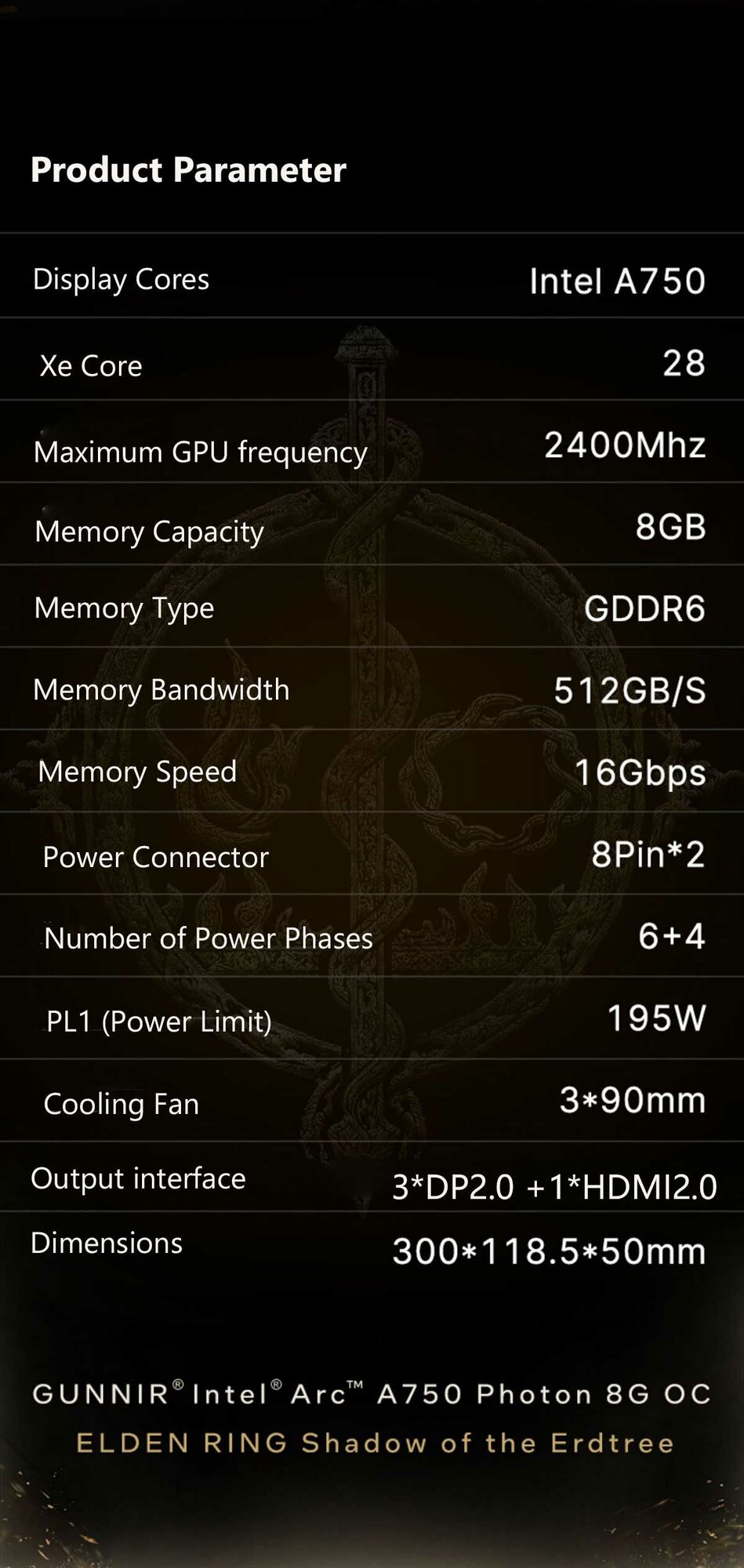 Видеокарта Intel Arc A750 Photon 8G OC X GDDR6 2400MHz (ELDEN RING Shadow of the Erdtree) интересное:
