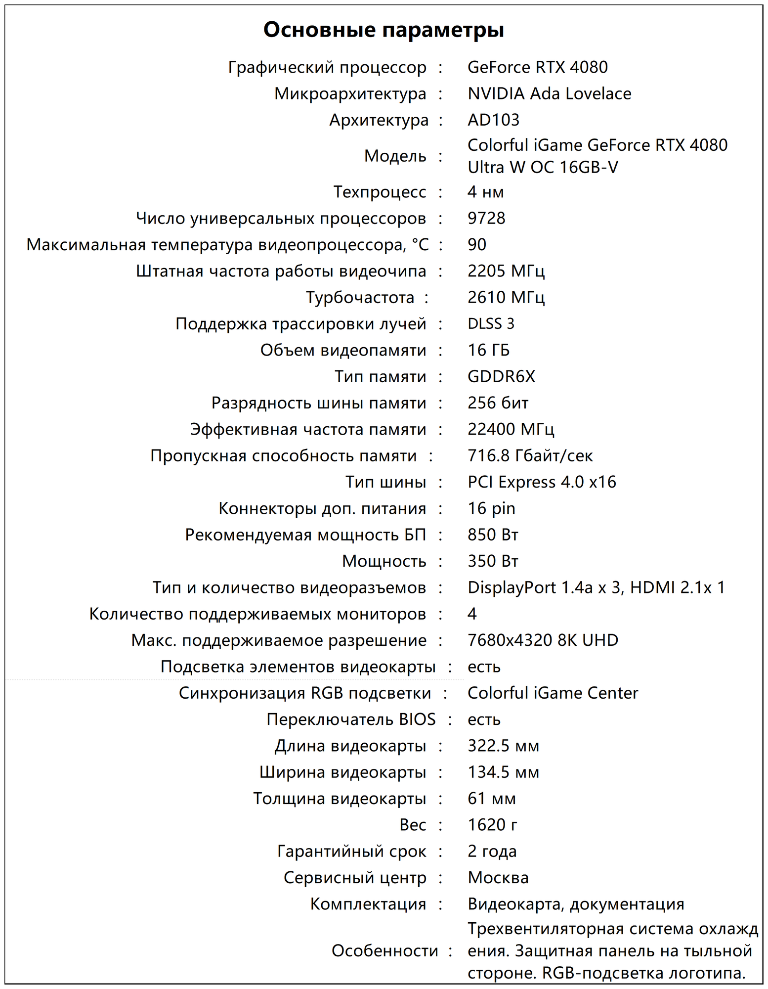 | Название видеокарты | NVIDIA GeForce RTX 4080 |