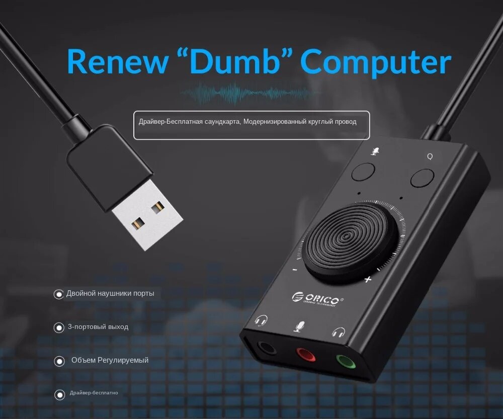 Внешняя звуковая карта ORICO, USB, 3,5 мм, с регулировкой громкости интересное: