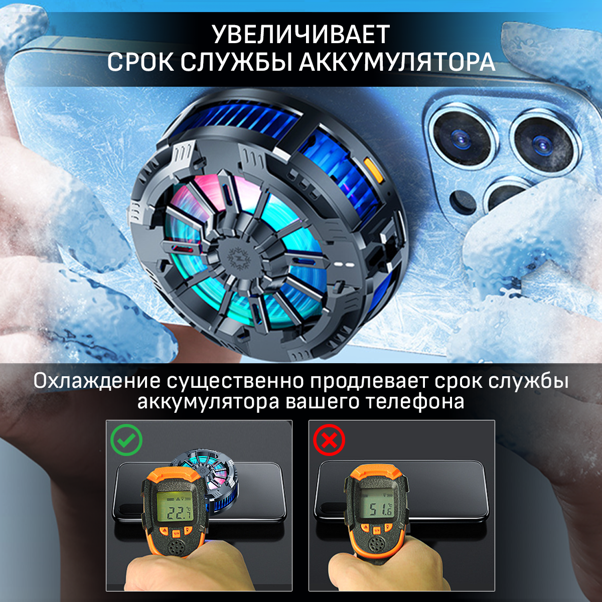 Кулер для охлаждения телефона магнитный Hangwoods, 1 штука с подсветкой