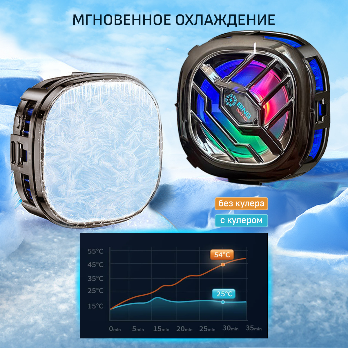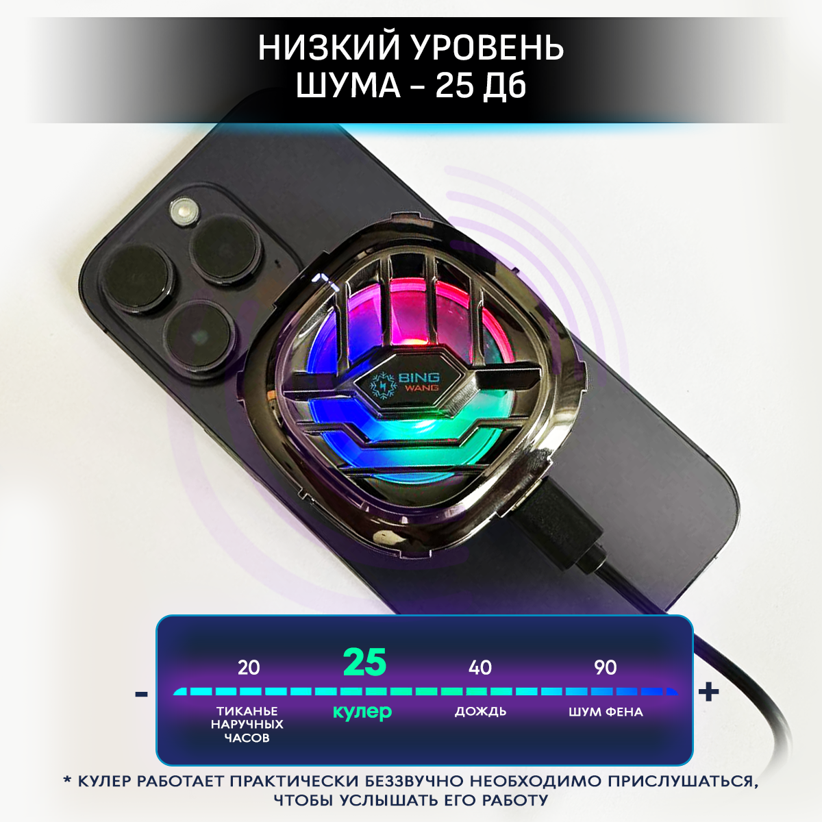 Кулер для охлаждения телефона магнитный Hangwoods, 1 штука с подсветкой
