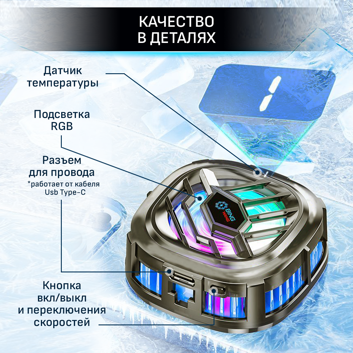 Кулер для телефона магнитный игровой вентилятор
