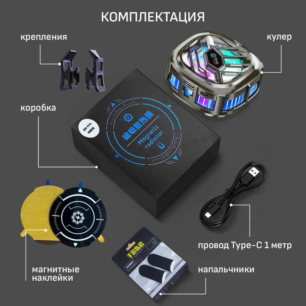 Кулер для охлаждения телефона с элементом Пельтье, напальчники в подарок