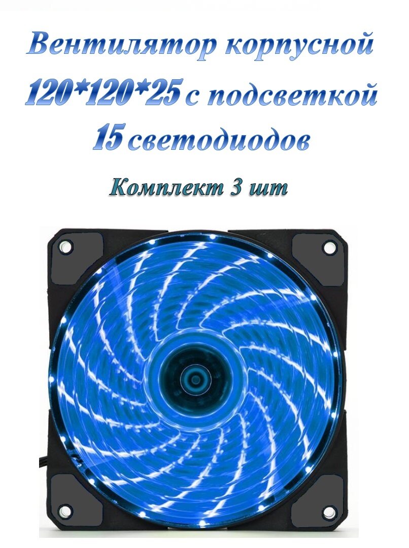 СохранитьВентилятор / кулер с подсветкой 120*120*25мм синий, 15 (led) светодиодов (3шт.) интересное: