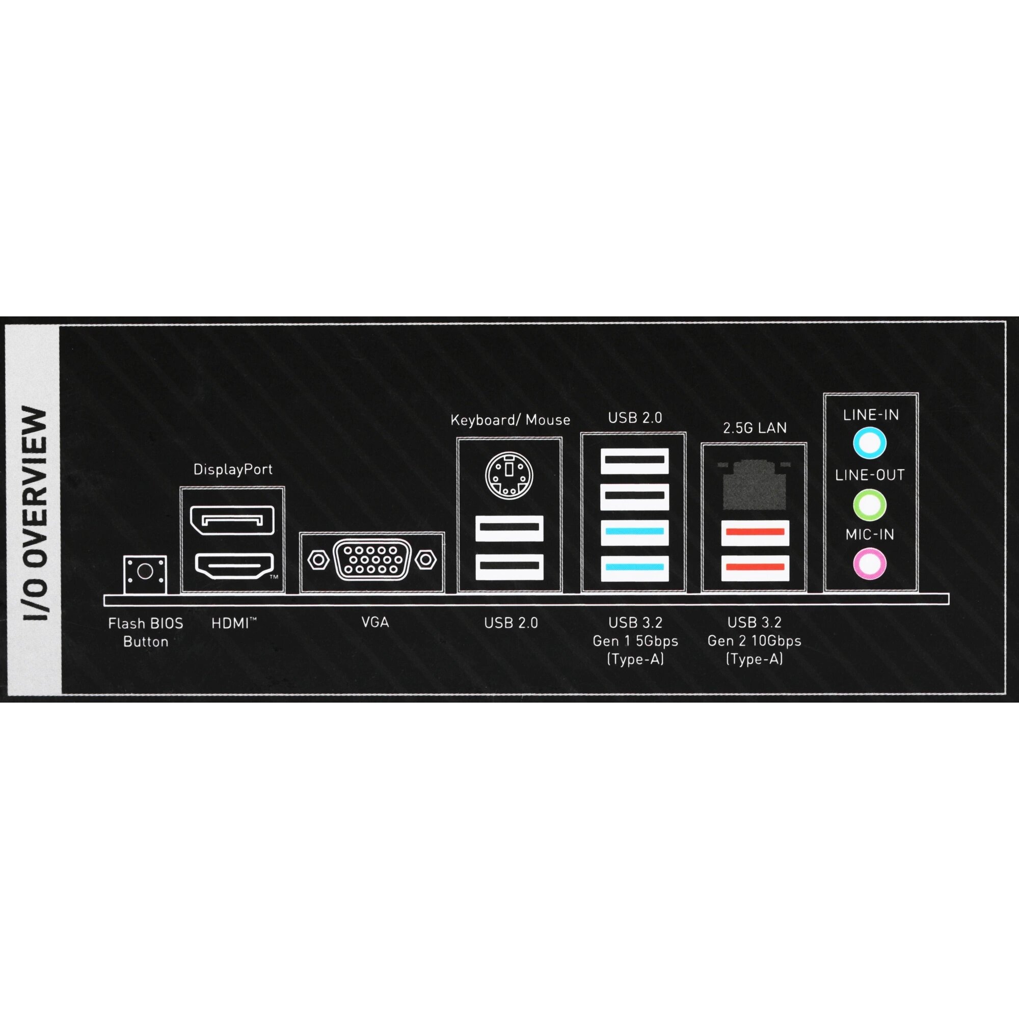 | Разъемы на задней панели | 2 x USB 3.2 Gen1 Type-A, 2 x USB 3.2 Gen2 Type-A, 4 x USB 2.0 Type-A, DisplayPort, HDMI, LAN RJ-45, PS/2 (клавиатура/мышь), VGA |