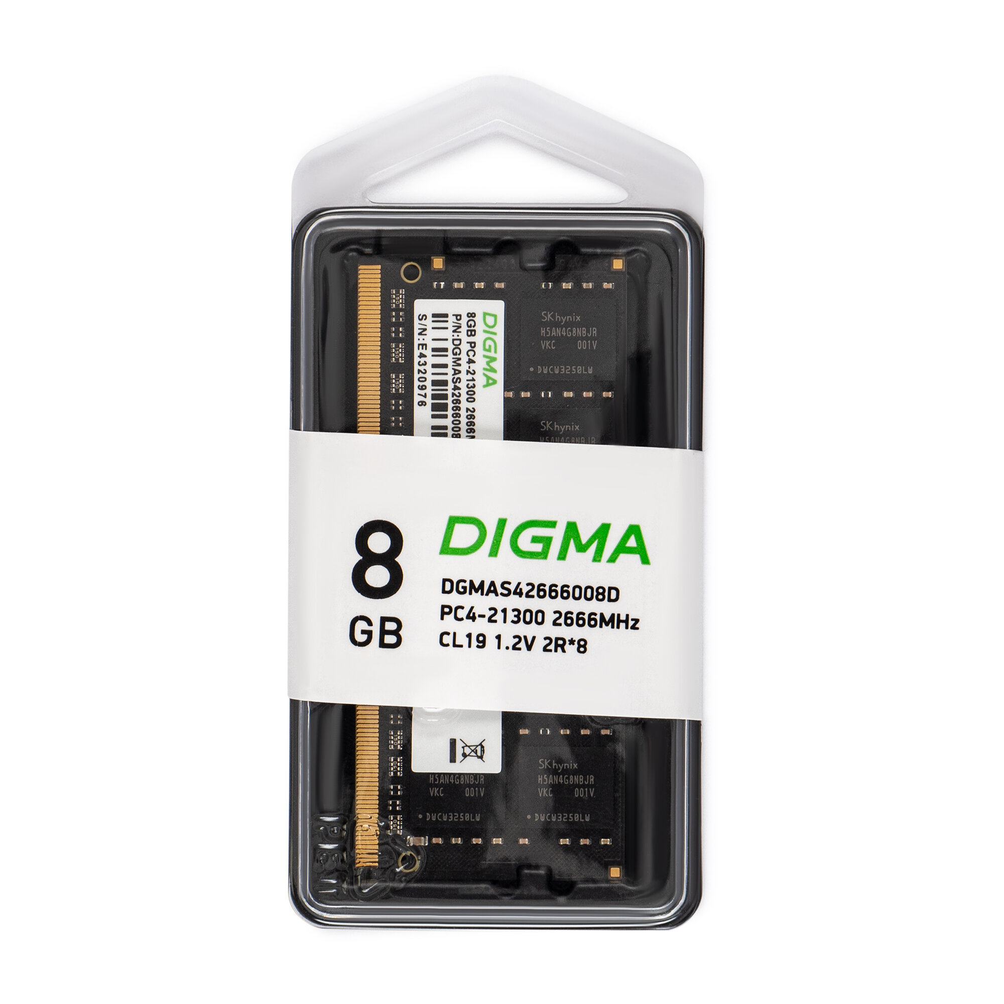 Купить Память SO-DIMM DDR4 8Gb 2666MHz Digma DGMAS42666008D RTL PC4-21300 CL19 260-pin 1.2В dual rank Ret