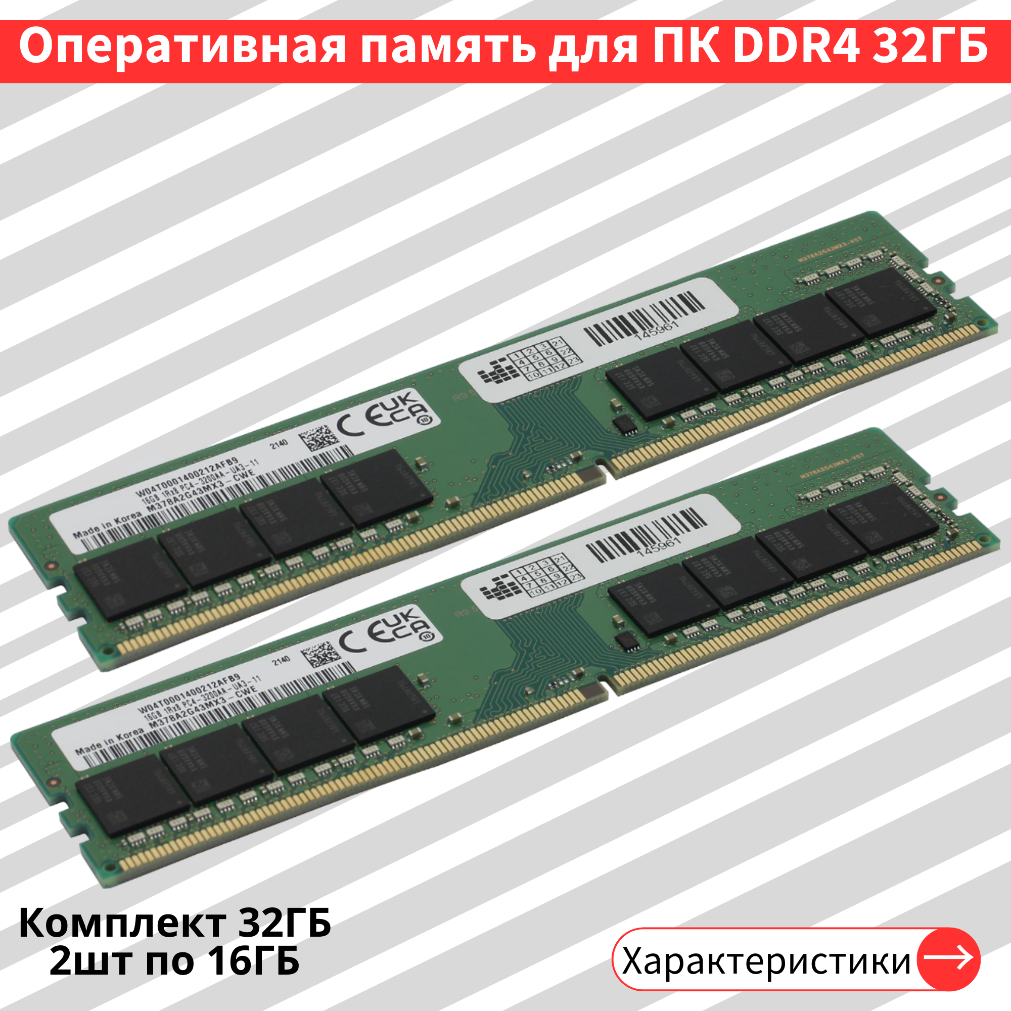 Комплект оперативной памяти Samsung 32 ГБ DDR4 3200 МГц 1.2V DIMM 2 шт по 16 гб