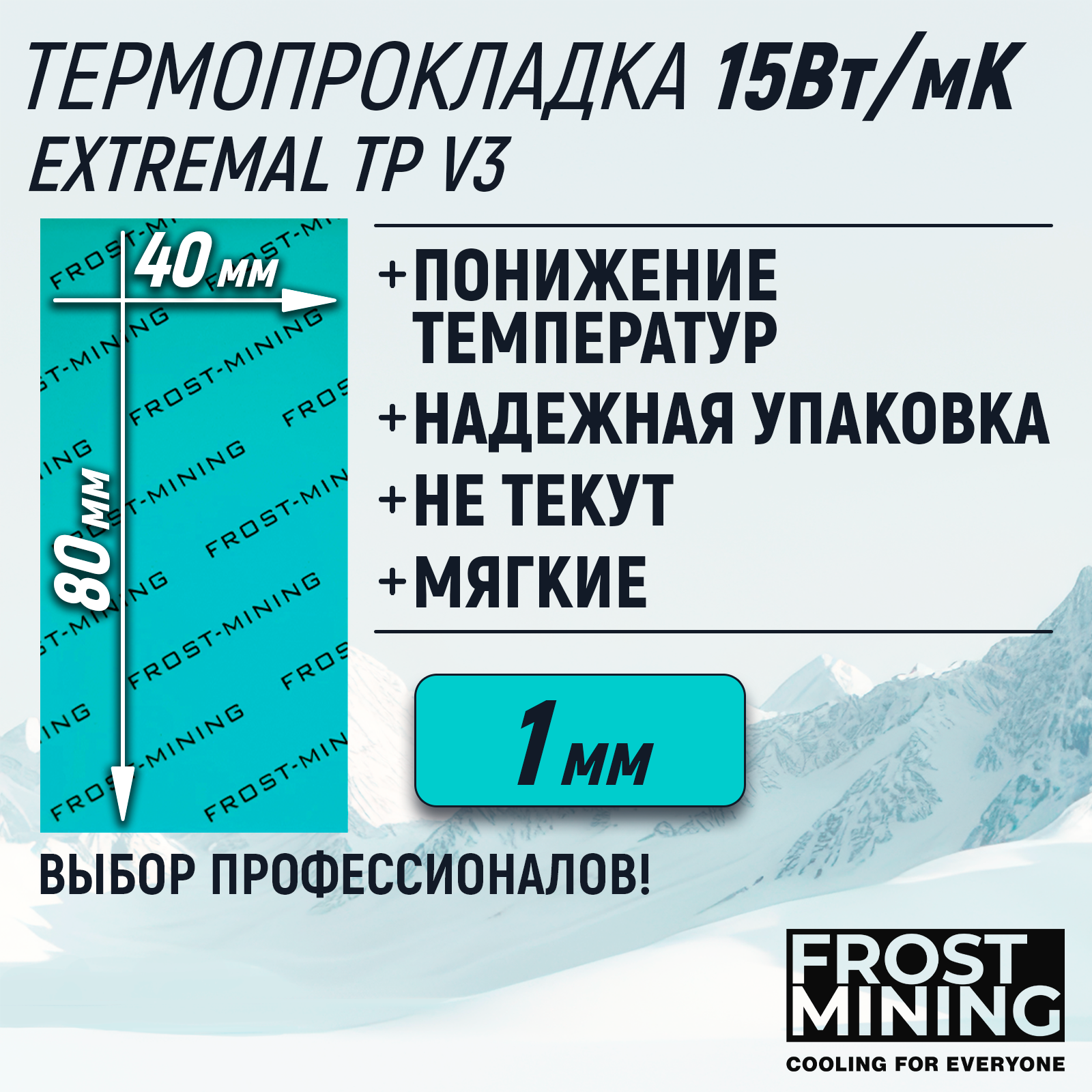 СохранитьТермопрокладка 1мм 15 Вт/мК FrostMining Extremal Thermal Pads V3 интересное: