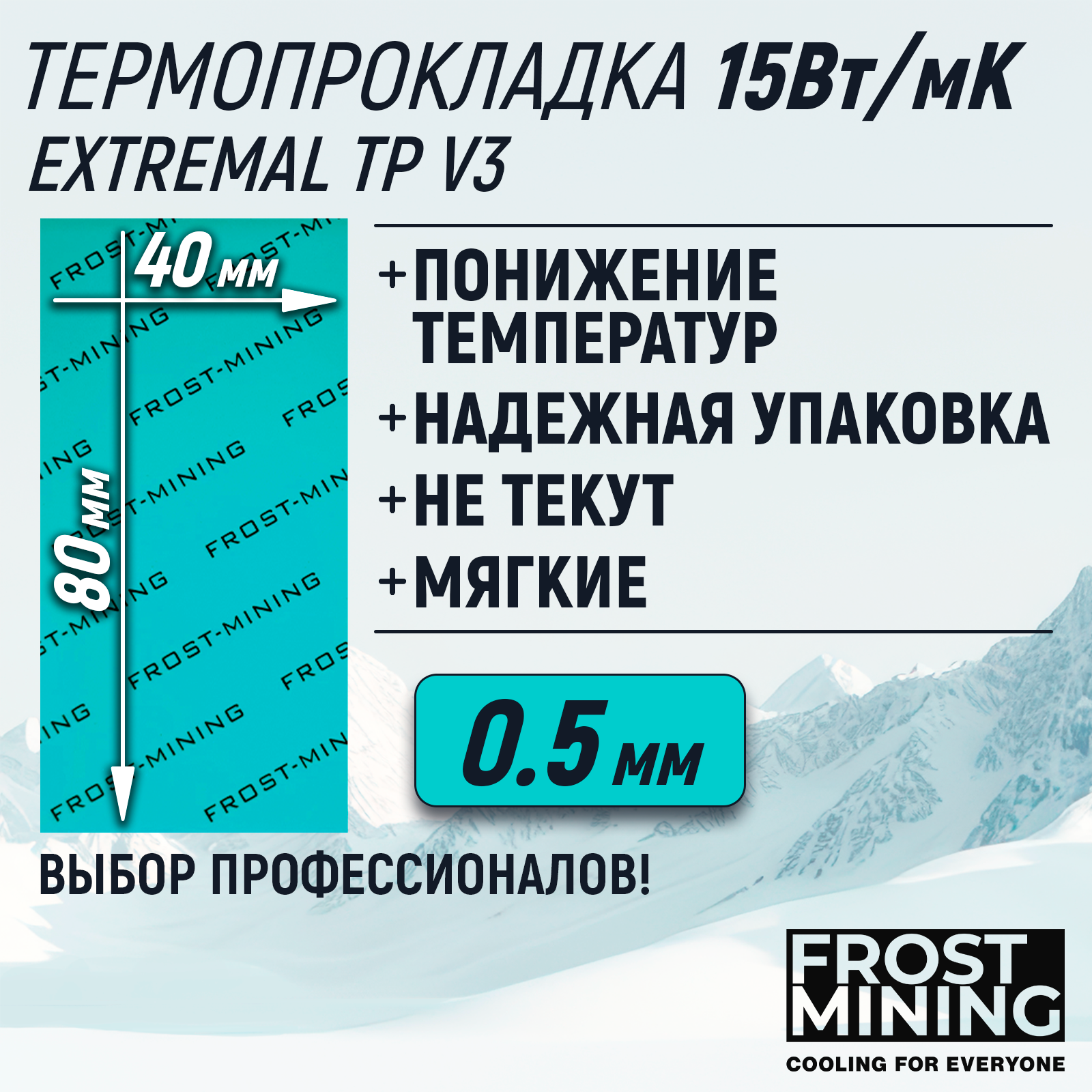 Купить Термопрокладка 0.5мм 15 Вт/мК FrostMining Extremal Thermal Pads V3