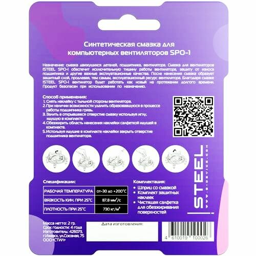 Синтетическая смазка для компьютерных вентиляторов !STEEL Glide Synthetic SPO-1, 2 грамма интересное: