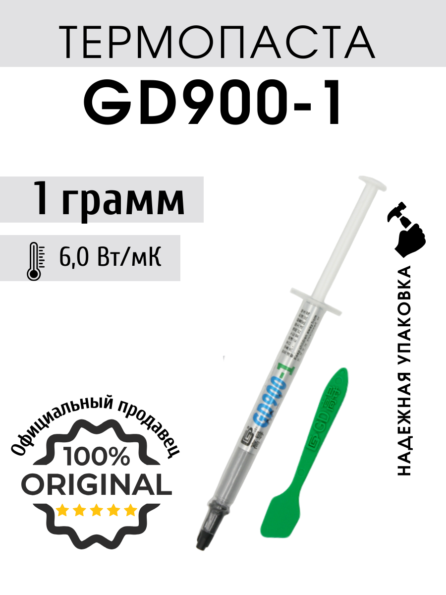 Термопаста GD900-1 теплопроводность 6,0 Вт/мК 1 грамм в шприце с лопаткой интересное: