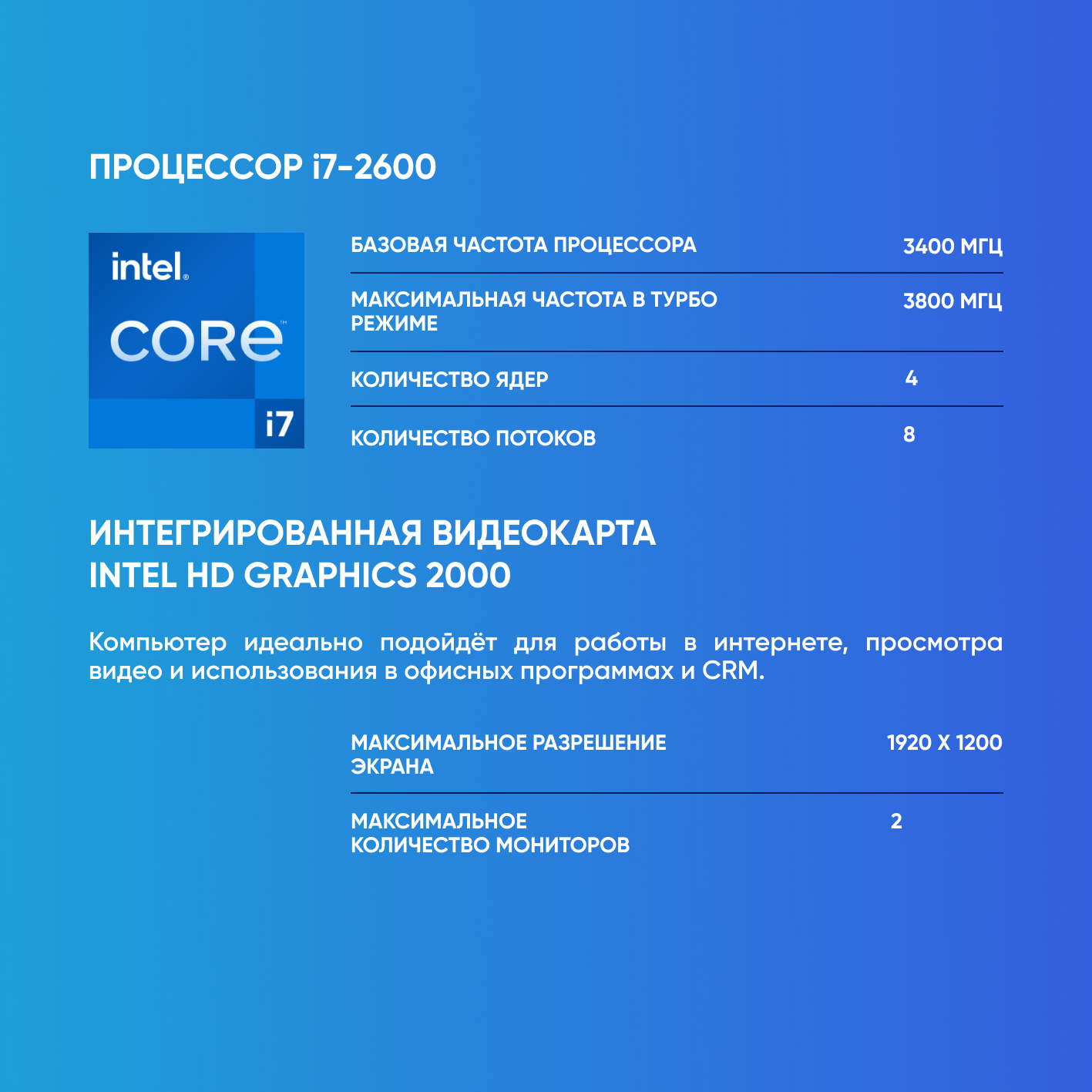 СохранитьСистемный блок AURORA ПК Office FL forza Компьютер офисный (Intel Core i7-2600 (3.4 ГГц), RAM 16 ГБ, SSD 512 ГБ, Intel HD Graphics 2000, Windows 10 Pro), чёрный матовый интересное: