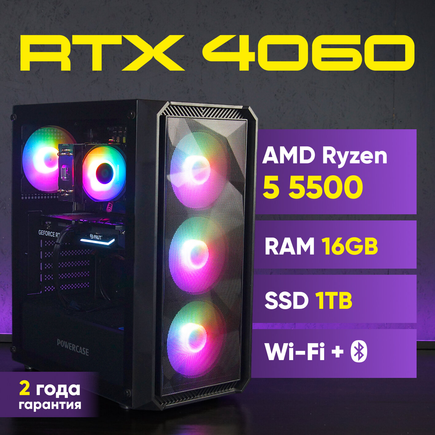 Купить Системный блок игровой AURORA GAMING ПК Игровой компьютер (AMD Ryzen 5 5500 (3.6 ГГц), RAM 16 ГБ, SSD 1000 ГБ, NVIDIA GeForce RTX 4060 (8 ГБ), Windows 11 Pro), черный матовый